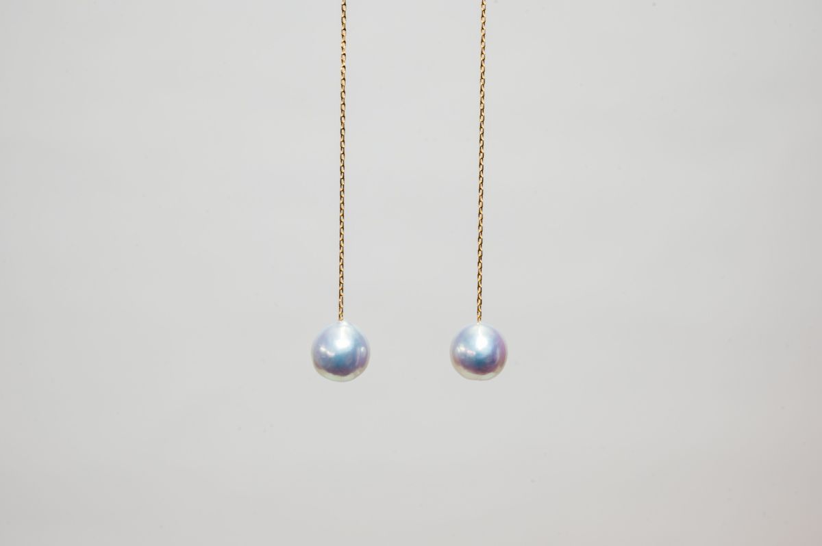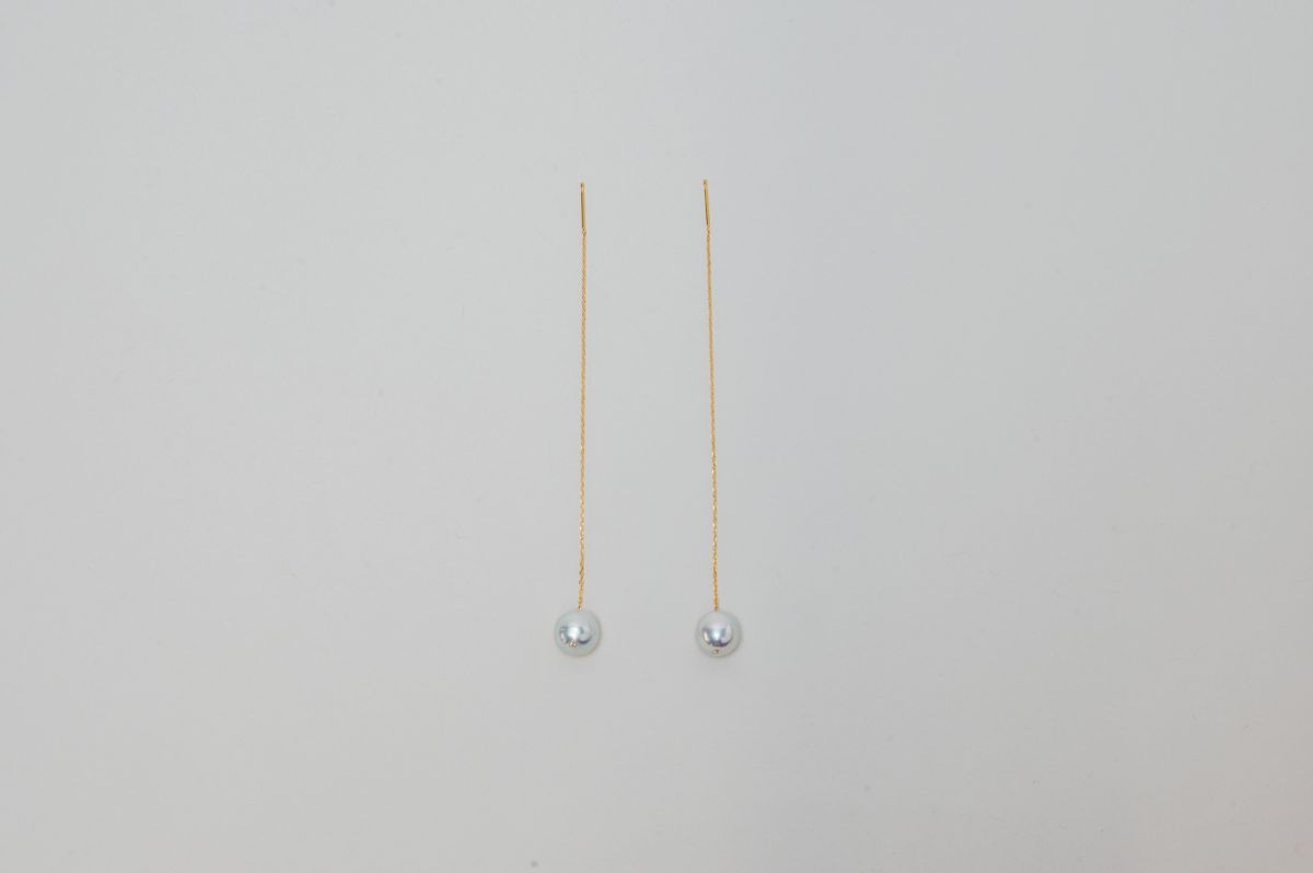 MADAMAの定番となるアコヤバロックパールのアメリカンピアス。自然が育んだ美しいナチュラルグレーの色味とバロックの形を堪能できるシンプルなデザイン。K18のイエローゴールドとアコヤパールのグレーが互いの色味を際立たせます。8cmのロングチェーンで長さを自由自在で楽しめます。片方は後ろにチェーンを垂らし直付け風に。片方はロングのアメリカンピアスとしてアシンメトリーな着け方も素敵です。片耳にピアスホールが2つ以上空いてる方は、チェーン部分が長いので2つ穴に通して遊ぶこともおすすめ。他のピアスやイヤーカフとの重ねづけにも便利なアイテムです。
