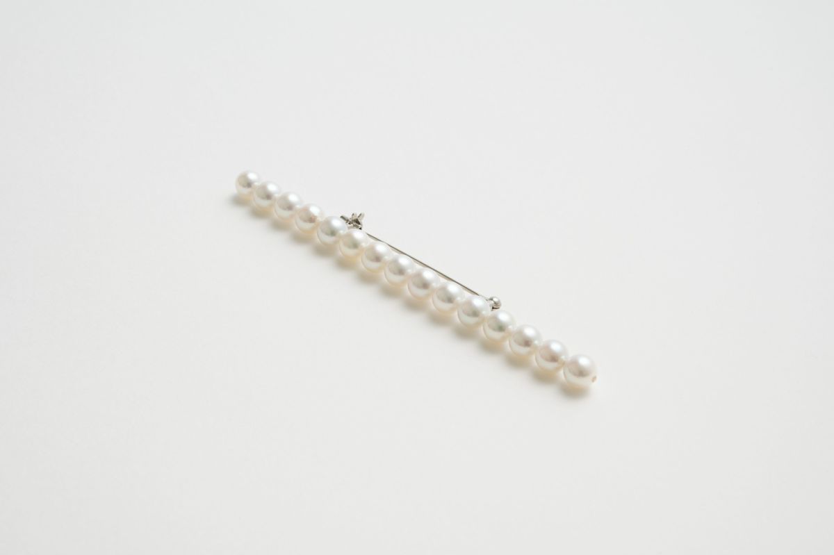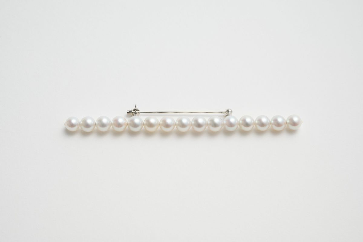 無調色真珠ならではの自然が育んだ色味と美しい照りが堪能できるアコヤパールを贅沢に使ったバータイプのブローチ。余分なデザインを一切加えていないシンプルなデザインなのでシーンを選ばずに使えます。ロングタイプは存在感抜群で、縦、横、斜めと着ける角度を変えるだけで印象も違ってお楽しみいただけます。ジャケットのラペルに沿ってや、シャツの合わせに沿わせたりとファッションアイテムとして色々と使える、他にはないパールアイテムです。