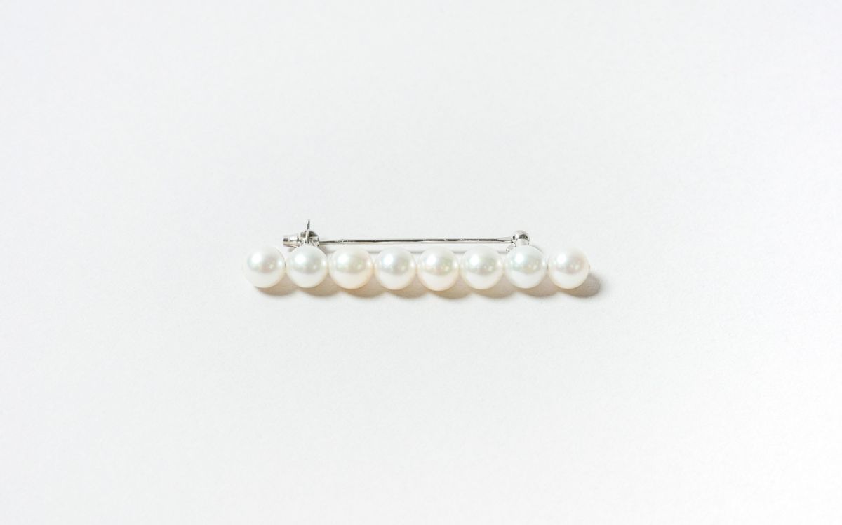 無調色真珠ならではの自然が育んだ色味と美しい照りが堪能できるアコヤパールを贅沢に使ったバータイプのブローチ。余分なデザインを一切加えていないシンプルなデザインなのでシーンを選ばずに使えます。ショートタイプは合わせやすく、着ける角度を変えるだけで印象も違って色々とお楽しみいただけます。