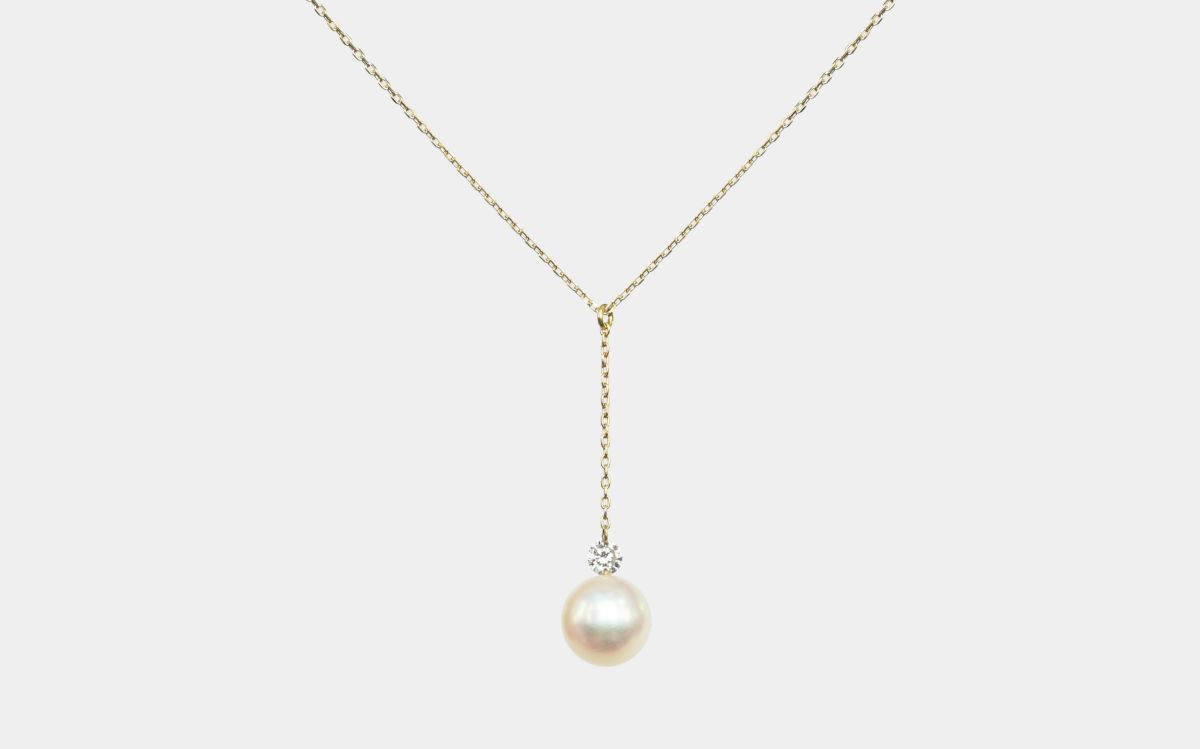 直接穴あけしたダイヤモンドをアコヤパールにあしらった繊細なデザインのペンダントトップのネックレス。少しだけチェーンを付けたトップはより揺れ感がでて、こなれた雰囲気に。ネックレスはピンスライドタイプで長さを自由に調整できます。トップ部分はチャームとして直付けピアスに合わせることも。無調色真珠ならではのアコヤパールの色味と照りの美しさをダイヤモンドの輝きが更に華やかに胸元を演出します。