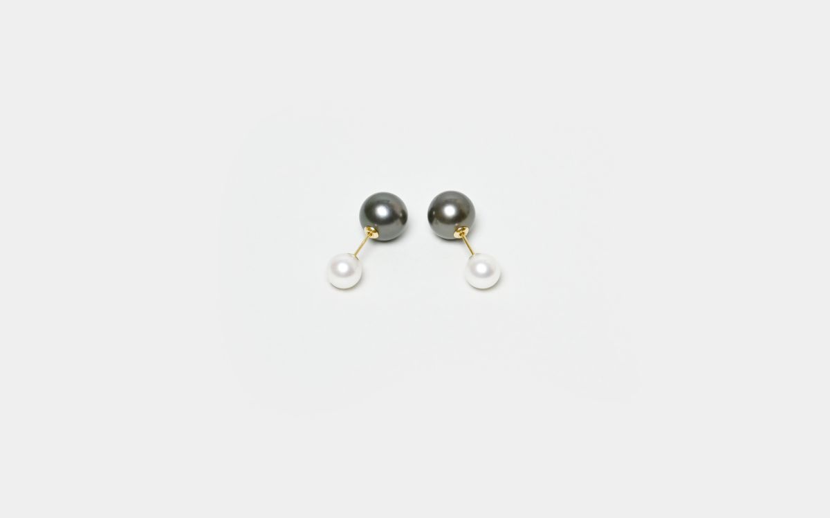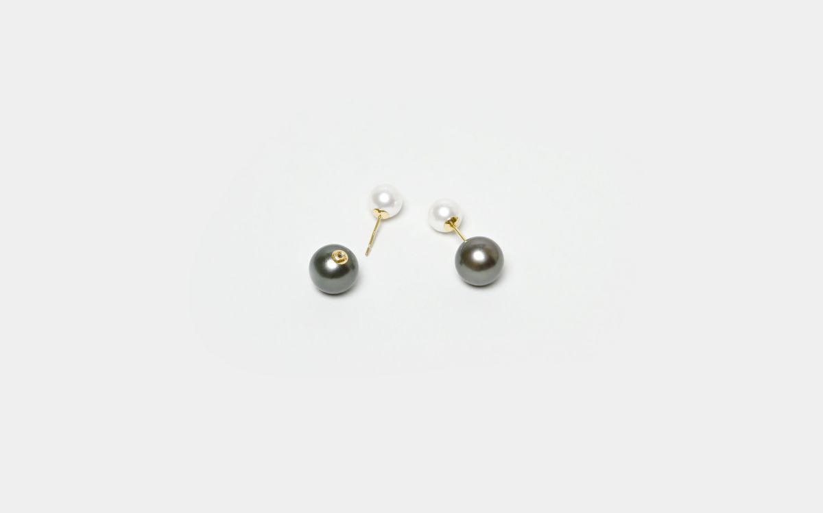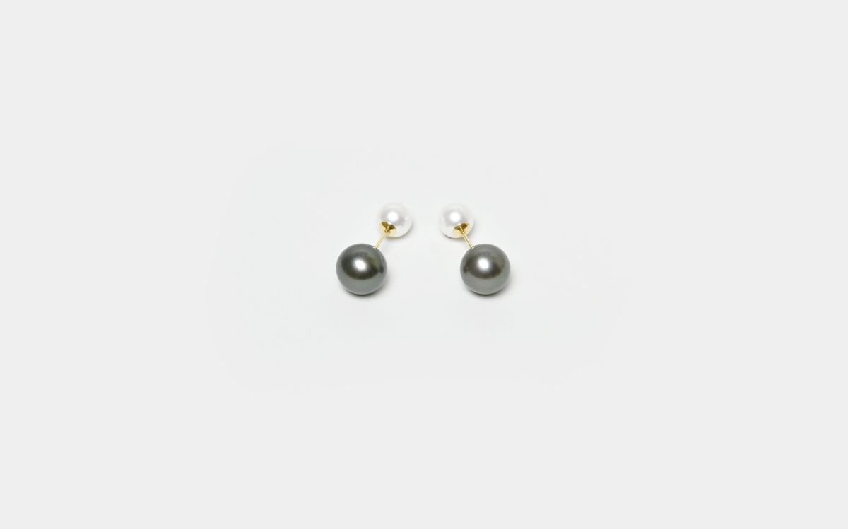 無調色真珠ならではの自然が育んだ美しい照りを堪能できるアコヤパールに、同じく自然の色味が美しい黒蝶パールをキャッチに施したデザインピアス。前後ろを反対にしてもお楽しみいただけます。アシンメトリーにつけても素敵です。普段のスタイリングをワンランクアップしてくれるパールアイテムです。