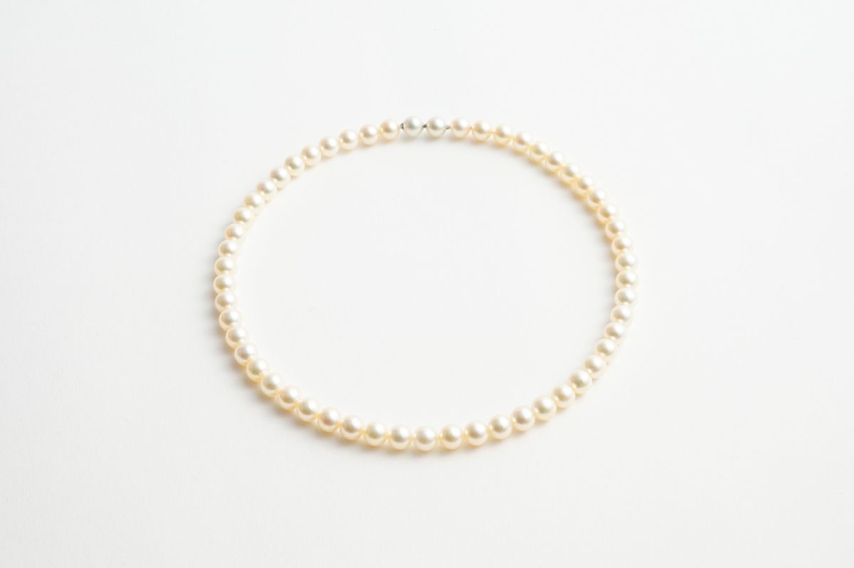 無調色真珠ならではの自然が育んだクリームカラーのアコヤパール。白のイメージが強いアコヤパールの中で希少となるクリームカラーのネックレスは肌馴染みが良く、柔らかな印象を与えてくれます。パールの中に埋め込まれた<MADAMA>オリジナルのクラスプは、回しながら差し込みねじると留められ、互いを押し合いねじると外れます。つなぎ目が見えず、どの角度からでもきれいにお着けいただけます。単品ではもちろん、他のモジュールと合わせればロングネックレスとしても使えます。白やナチュラルクレー、ブラックなど様々な色味と合わせても自然が生み出した色味なので喧嘩することなく、馴染みが良く、それぞれの色を際立たせたコントラストをお楽しみいただけます。ぜひ他にはないパールのカラースタイリングをご堪能ください。