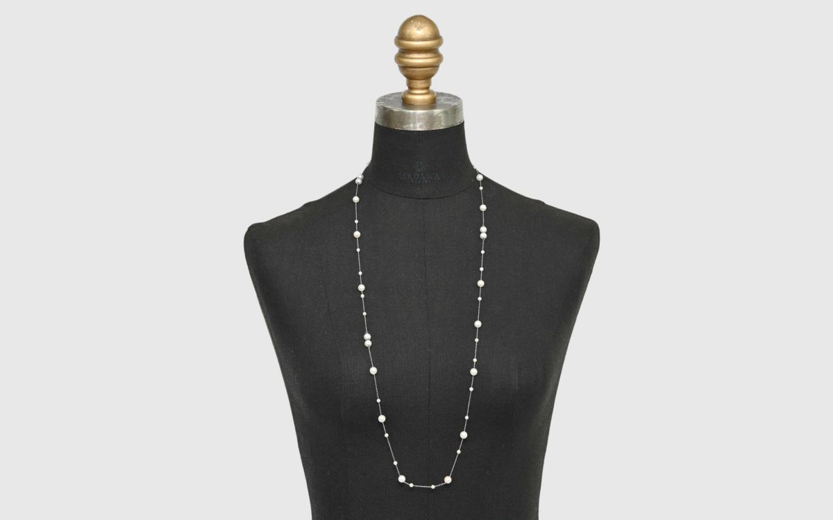 マダマで人気のステーションデザインの3本のモジュールをつなぎ合わせたロングネックレス。