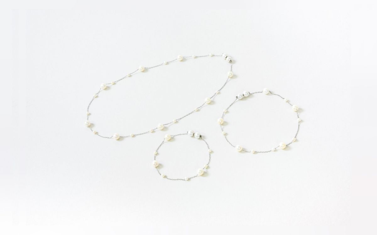 サージカルステンレスを使いより繊細なチェーンで無調色真珠ならではの自然の色味の美しいアコヤパールを際立たせます。