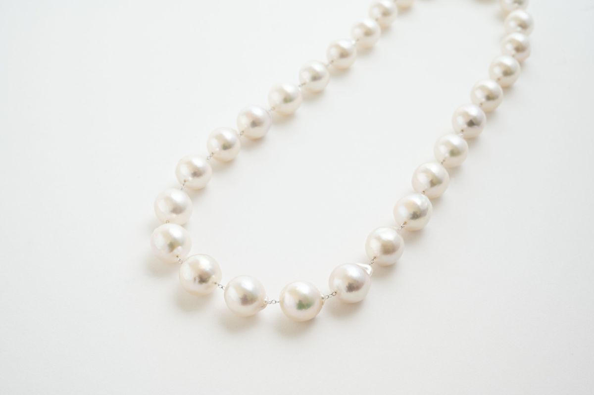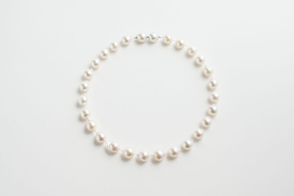 無調色真珠ならではの自然が育んだ色味と美しい照りが堪能できるアコヤパールネックレス。
