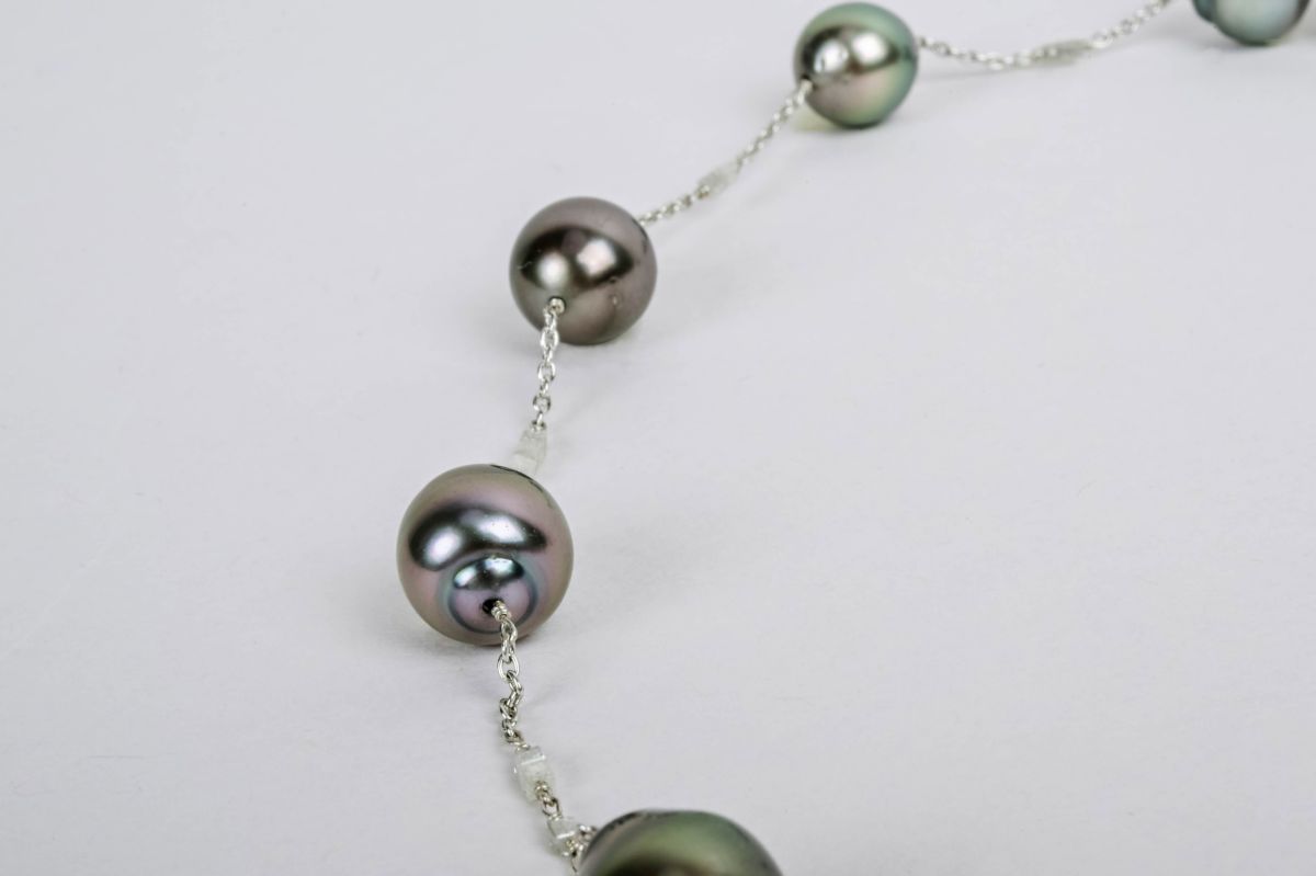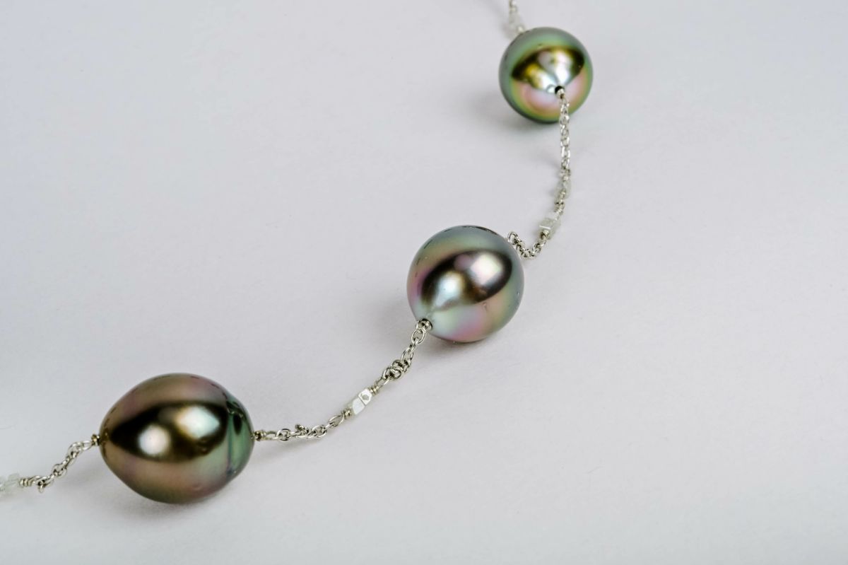 黒蝶バロックパールダイヤモンドステーションネックレス