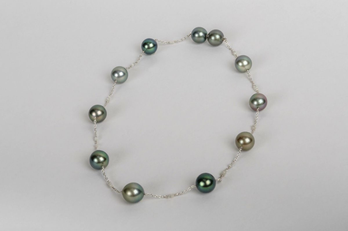 4. 黒蝶パールダイヤモンドステーションネックレス 約10mm