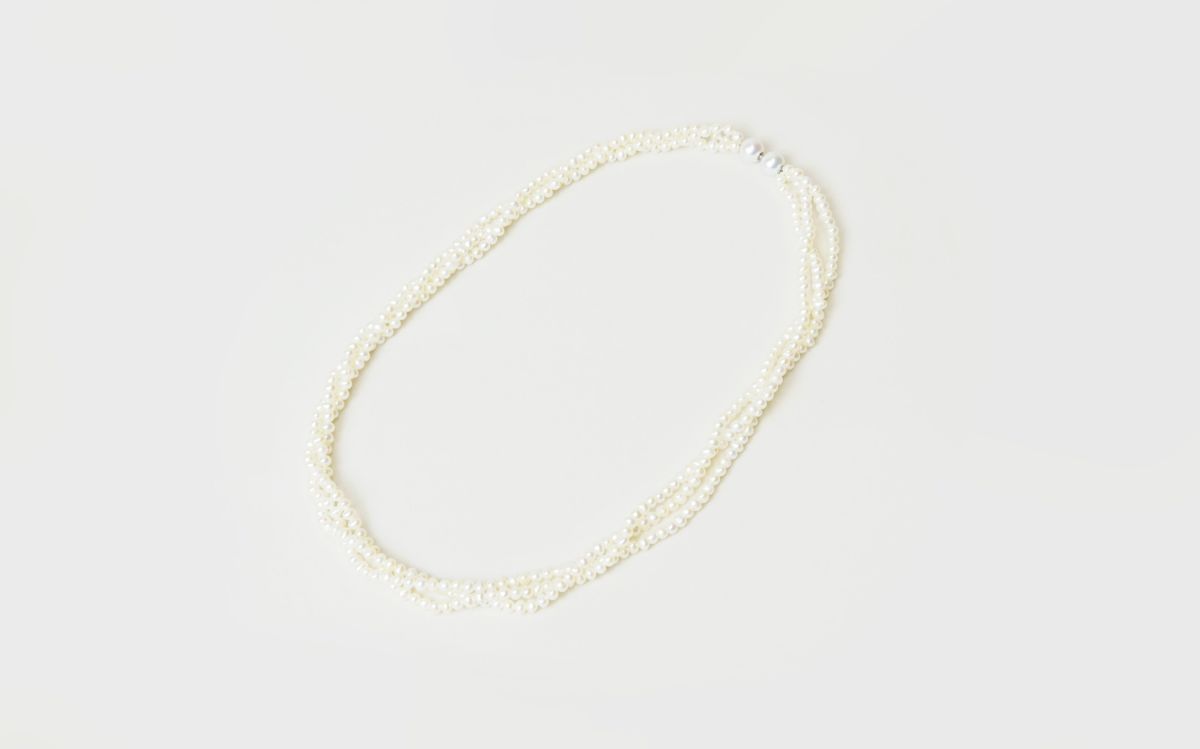淡水のケシパールを3連にしたネックレス。さりげないボリューム感でカジュアルにも合わせやすいデザイン。パールの中に埋め込まれた<MADAMA>オリジナルのクラスプは、回しながら差し込みねじると留められ、互いを押し合いねじると外れます。つなぎ目が見えず、どの角度からでもきれいにお着けいただけます。単品ではもちろん、他のモジュールと合わせればロングネックレスとしても使えます。他にはないパールスタイリングをお楽しみください。