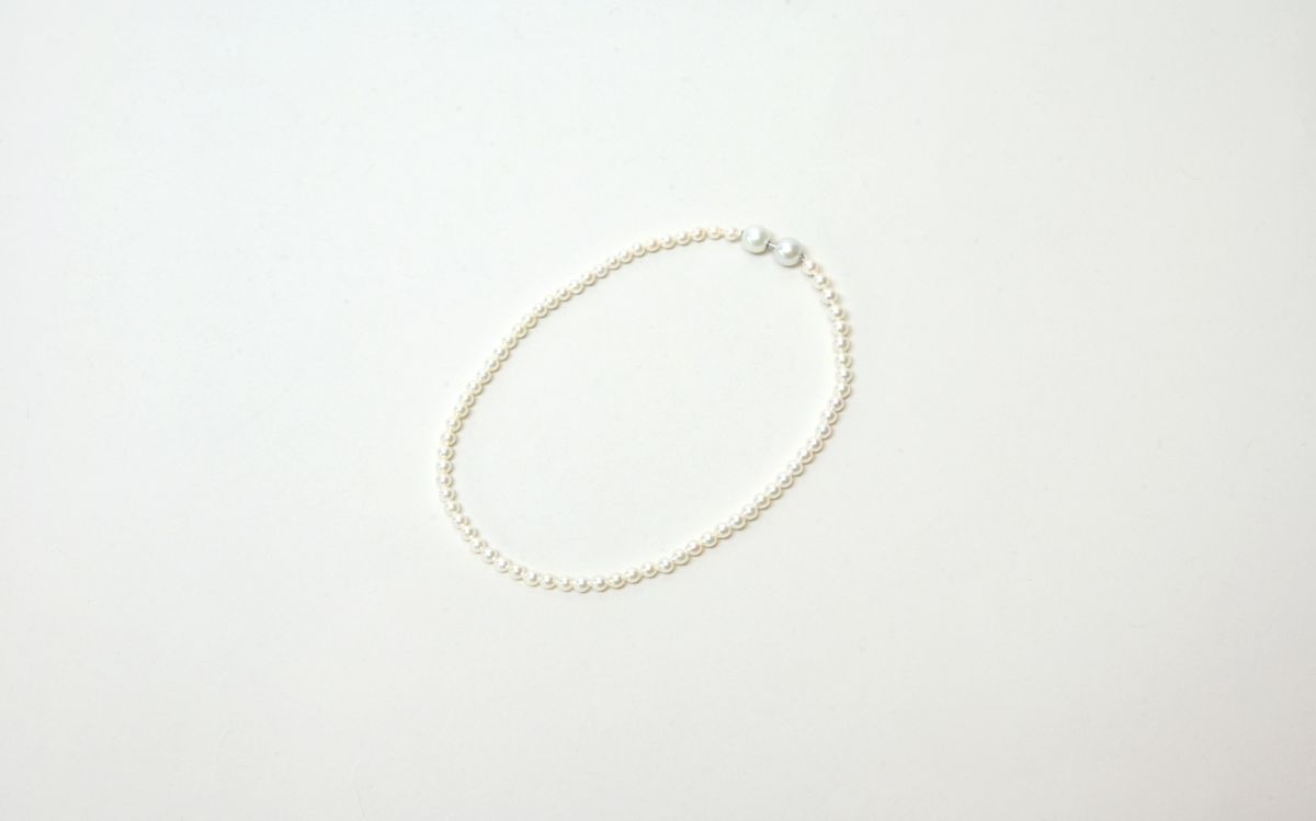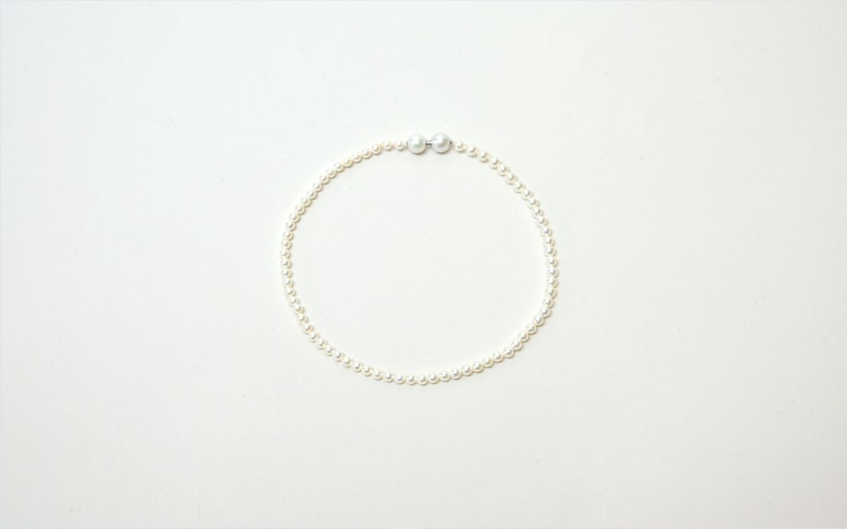 希少なアコヤの3mmのベビーパールの25cmのモジュール。単品でアンクレットとしてお楽しみいただけます。繊細でありながらアコヤパールの美しい照りが堪能できます。パールの中に埋め込まれた<MADAMA>オリジナルのクラスプは、回しながら差し込みねじると留められ、互いを押し合いねじると外れます。つなぎ目が見えず、どの角度からでもきれいにお着けいただけます。クラスプ部分のパールがアクセントにもなり、他のモジュールと合わせればネックレスとしてもお楽しみいただけます。