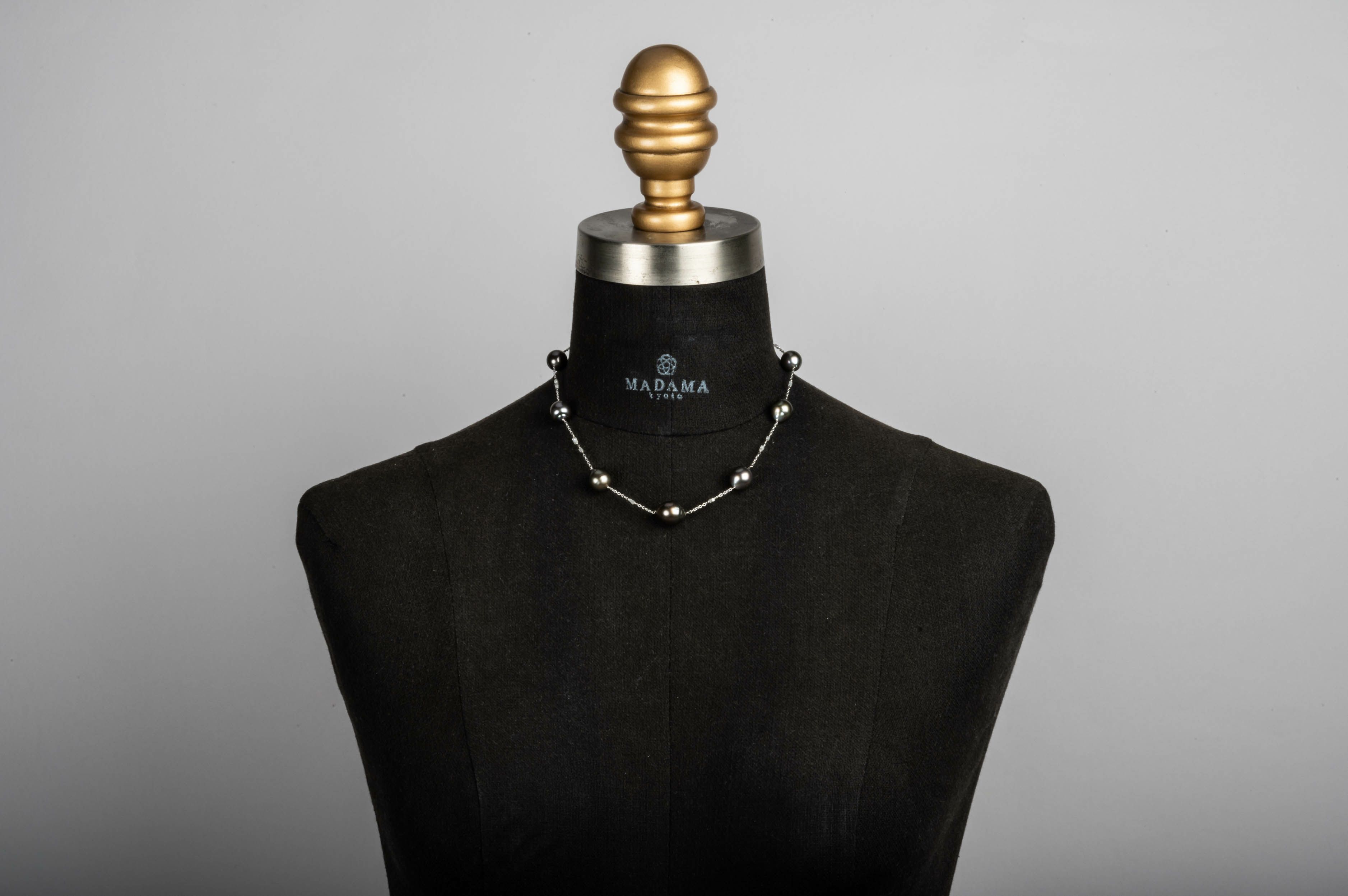黒蝶バロックパールダイヤモンドステーションネックレス