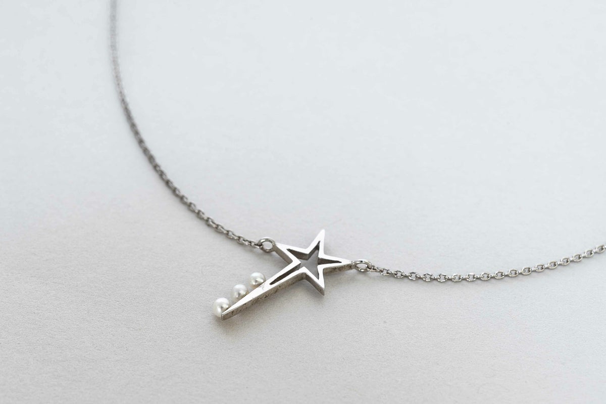 SVで施されたオリジナルデザインのスターモチーフには2mm以下の極小の珠を芯立てして留めている細やかなアイテムです。シャープで甘すぎないデザインでどんなスタイリングにも合わせやすく、重ね付けして自分らしさを出しても素敵です。