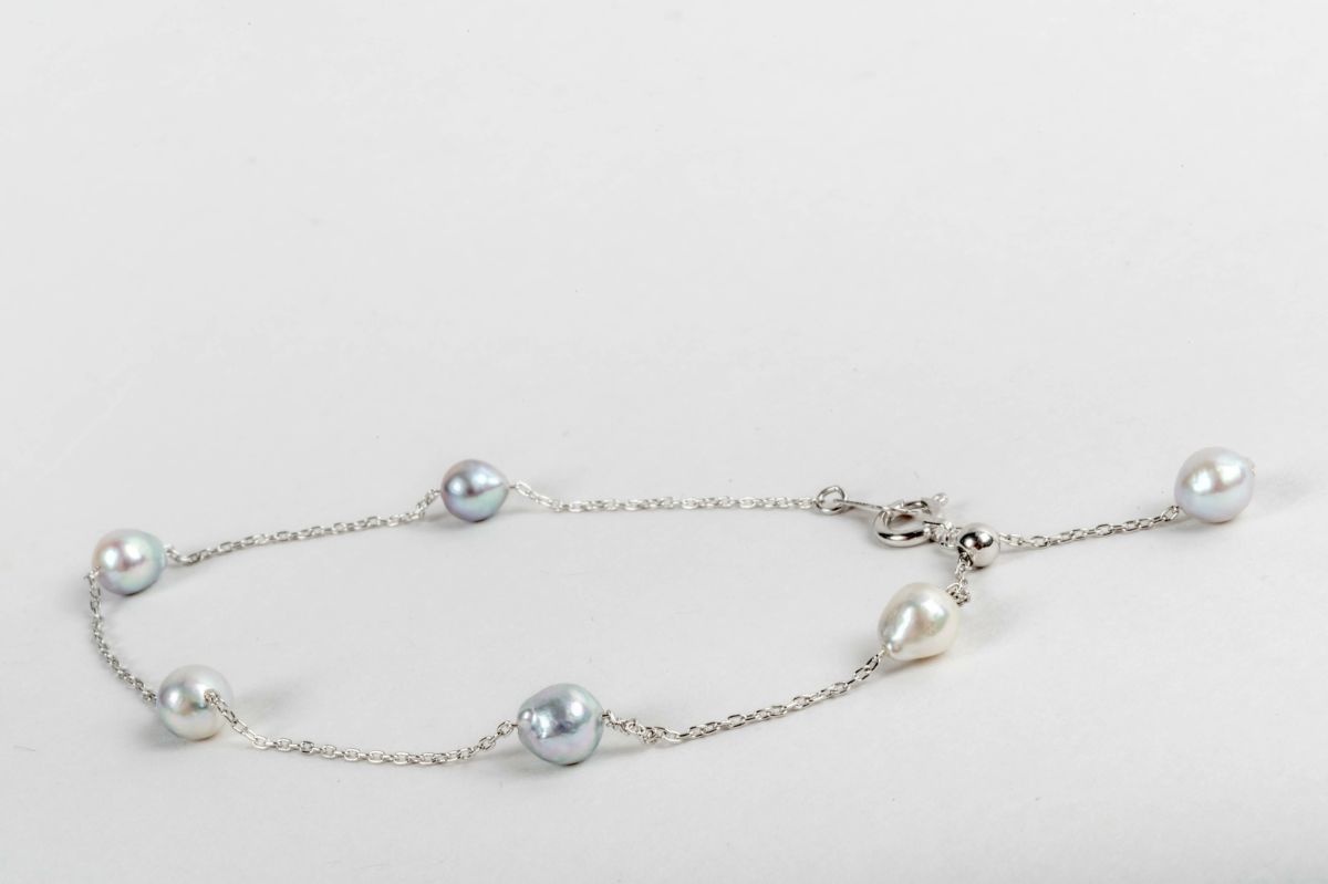 アコヤパールナチュラルグレーバロックステーションブレスレットK18WG