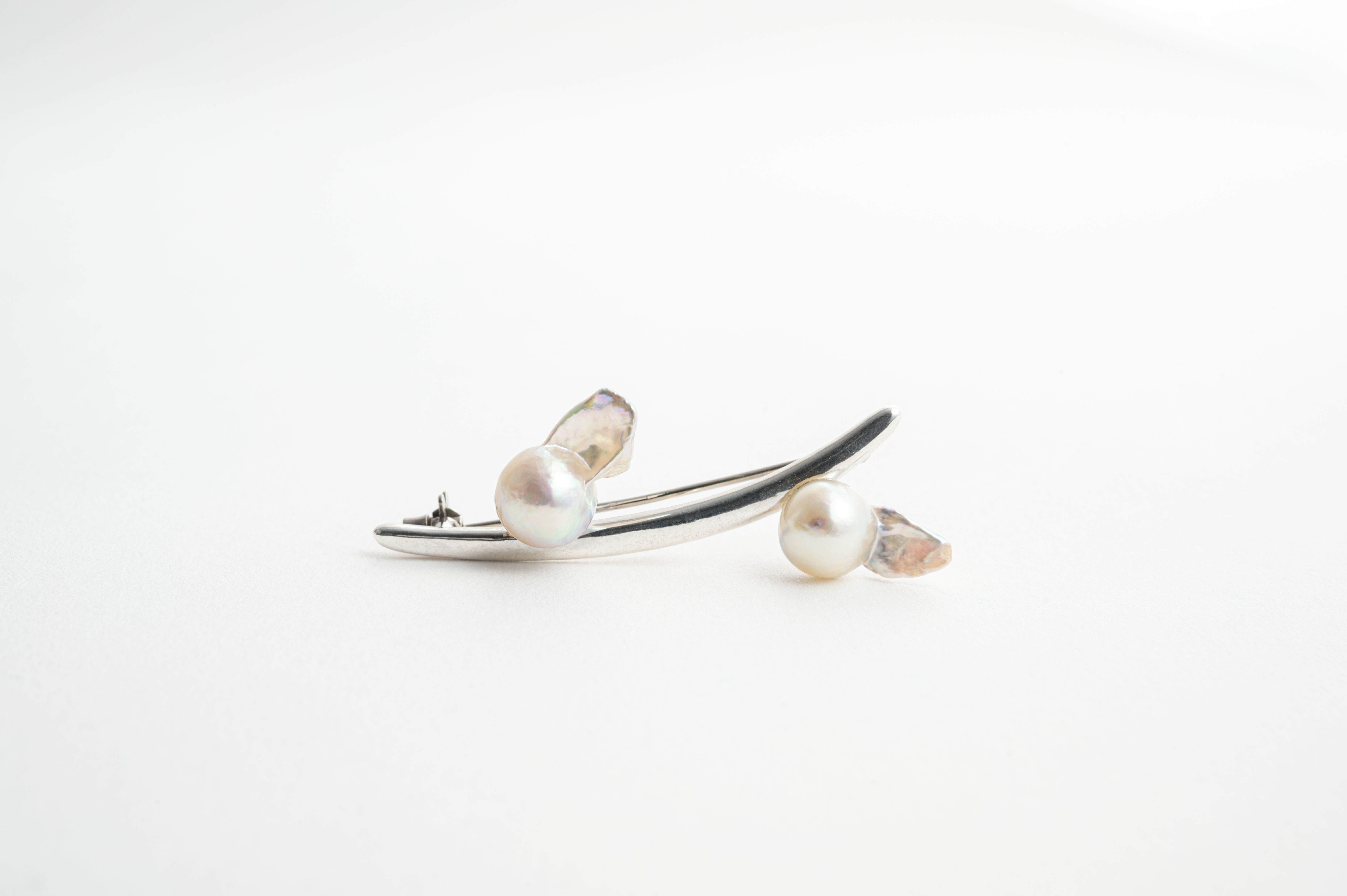 アコヤパールナチュラルグレーマルチカラーオーバルブローチ