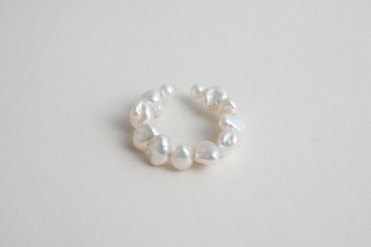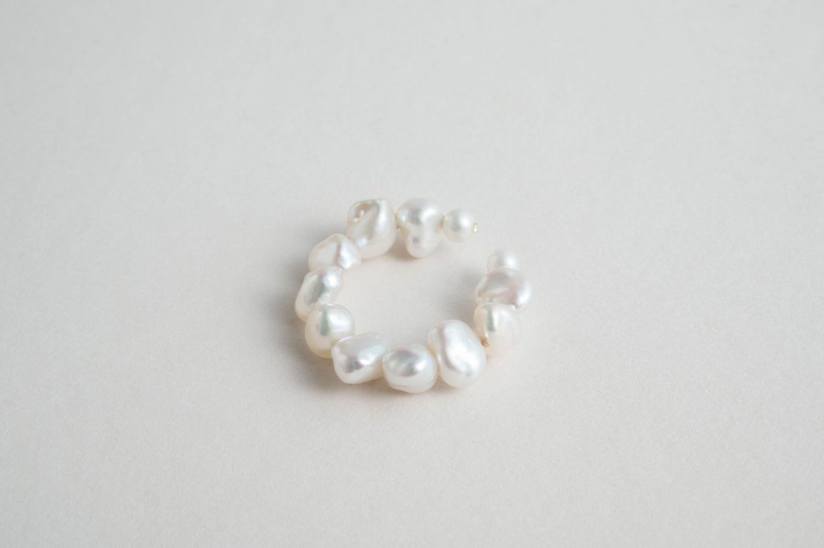 自然が育んだ個性的な形が特徴のバロックが強い淡水パールでイヤーカフにもリングにも使えるアイテムを作りました。パールの形と美しい照りが顔周りにあれば一気に華やかさを演出してくれます。また、リングは指がすっきりと見えて手元を華やかに。毎日のコーディネートに合わせて着ける指も変えられるもの嬉しいアイテムです。