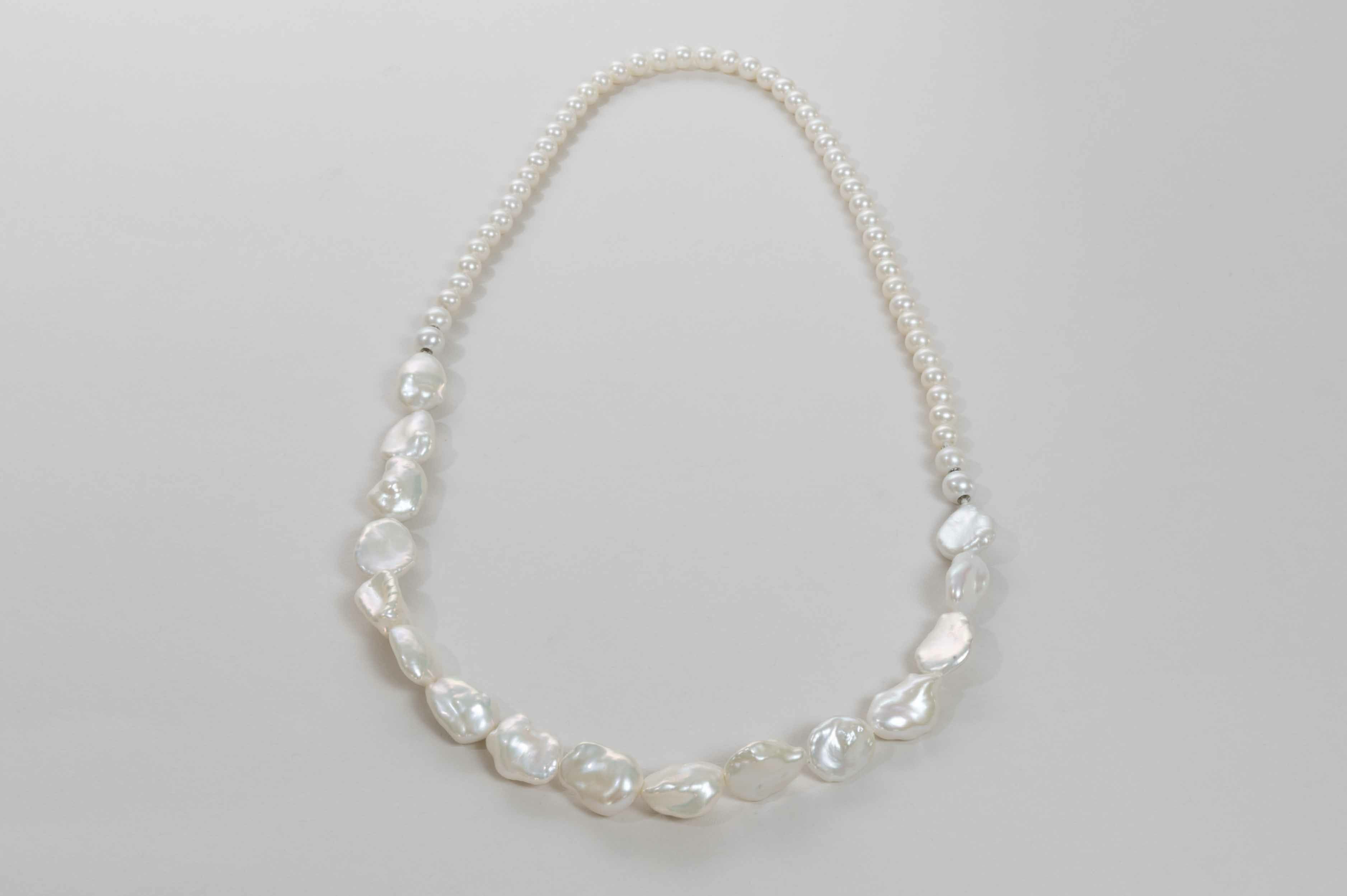 淡水板ケシバロック×ラウンドパールネックレス約10-13.5mm