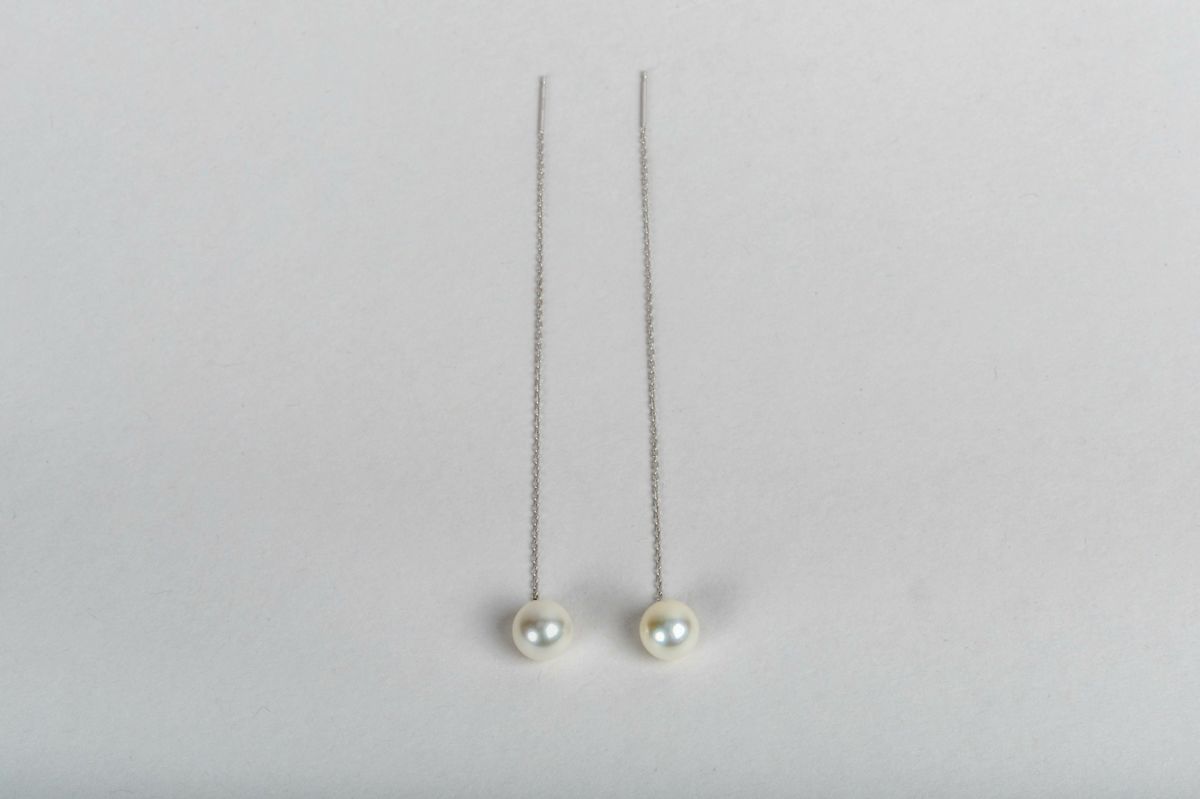 無調色真珠ならではの自然が育んだ色味を堪能できるアコヤパールの1粒のアメリカンピアス。7.5mmのしっかりとした存在感あるアコヤパールに8cmの長めのチェーンを施すことで、オケージョンからデイリーまで幅広いシーンで合わせられます。アコヤパールの白とK18のホワイトゴールドとでワントーンでシャープな印象に。チェーン部分は長さを自由に調整できるのでチェーンを後ろに垂らして直付け風にしたり耳たぶの下に垂れ下がるようにしたりと、その日のコーディネートに合わせて着け方をアレンジしてお楽しみください。