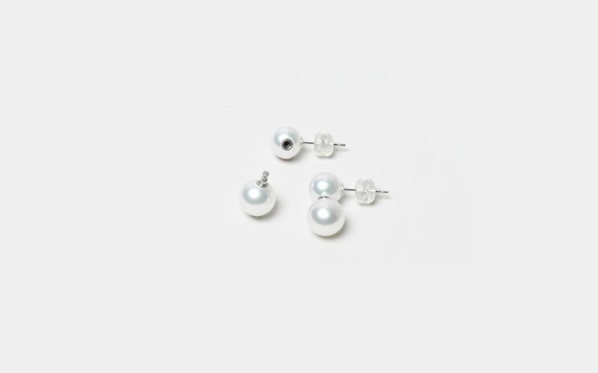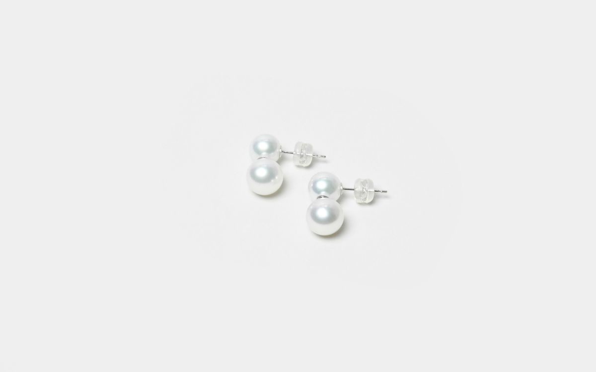 無調色真珠ならではの自然が育んだ色味と美しい照りが堪能できるアコヤパールを贅沢に使ったピアス。マダマのクラスプを使用したデザイン。パールの中に埋め込まれた<MADAMA>オリジナルのクラスプは、回しながら差し込みねじると留められ、互いを押し合いねじると外れます。つなぎ目が見えず、どの角度からでもきれいにお着けいただけます。下の珠は取り外し可能なので1珠ピアスとしてもお使いいただけます。華やかなシーンから冠婚葬祭、カジュアルにまで様々なスタイリングのアクセントにお楽しみください。