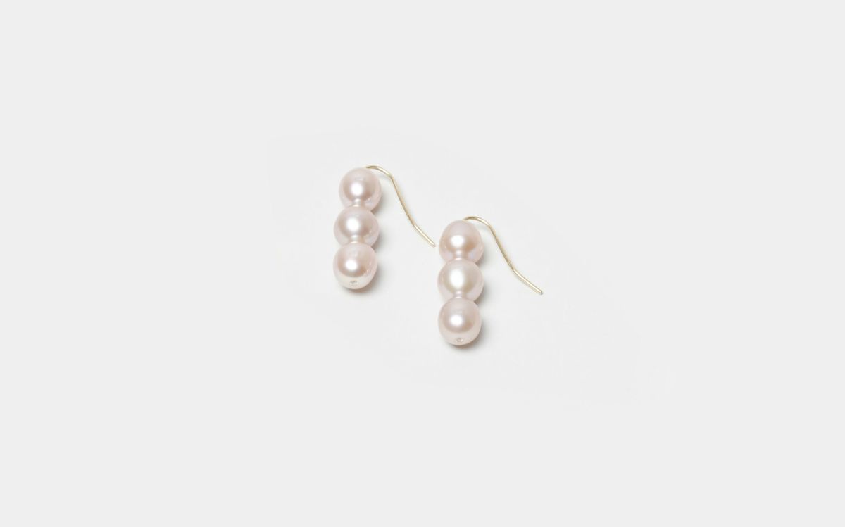 淡水パールの自然が生み出す綺麗なピンクカラー。オーバルの形ですっきりとしたラインを演出。3珠を連ねてボリューム感を出して顔周りを華やかに。白のパールとはまた違ったイメージをお楽しみください。