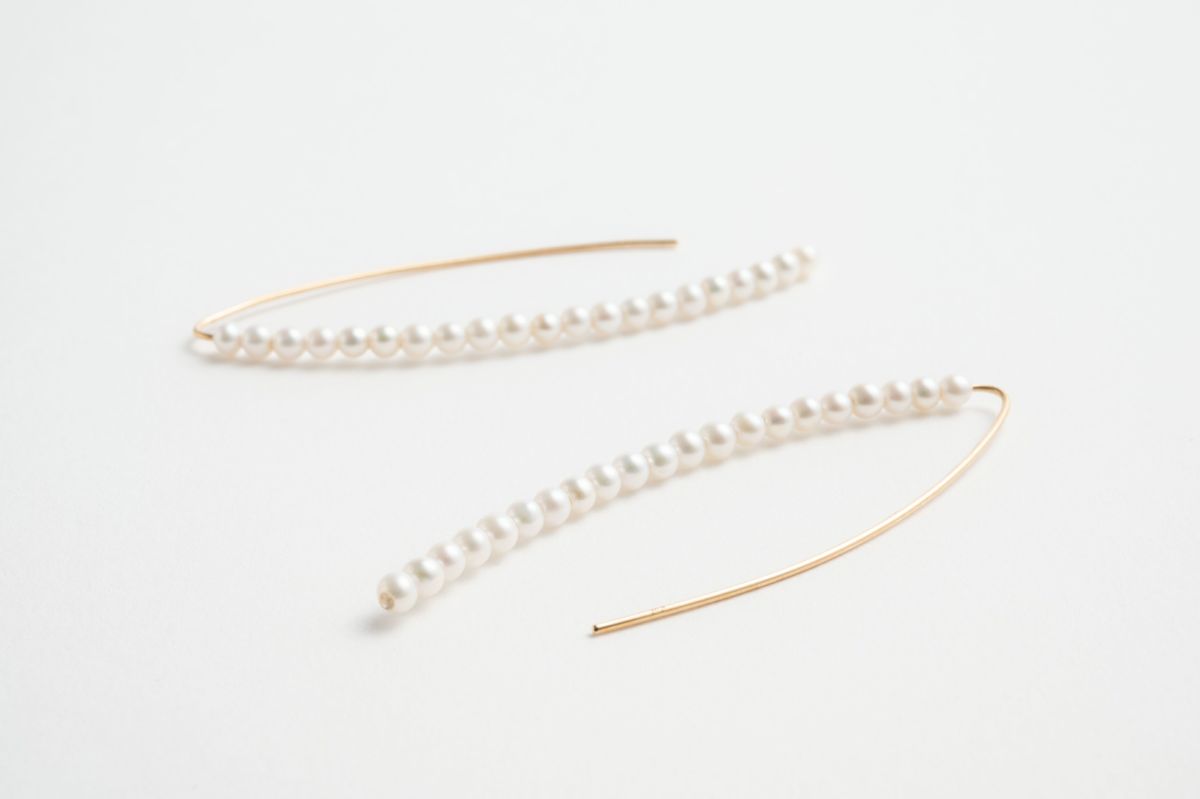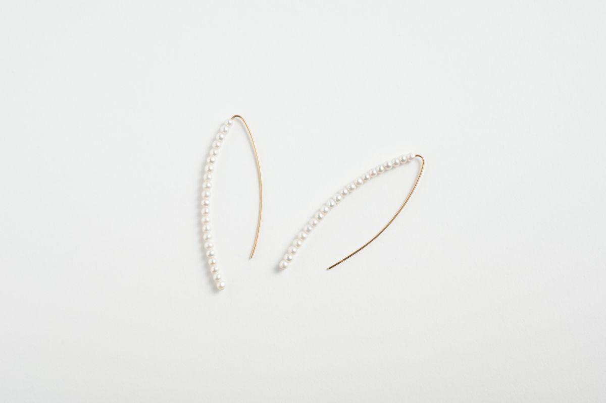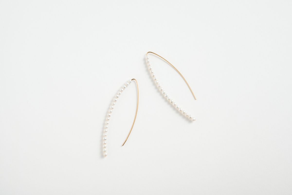 淡水の3mmのベビーパールで美しいアーチを描くフープピアス。すっきりとしたラインで他にない存在感を印象付けます。様々なシーンでワンランク上のスタイリングに。