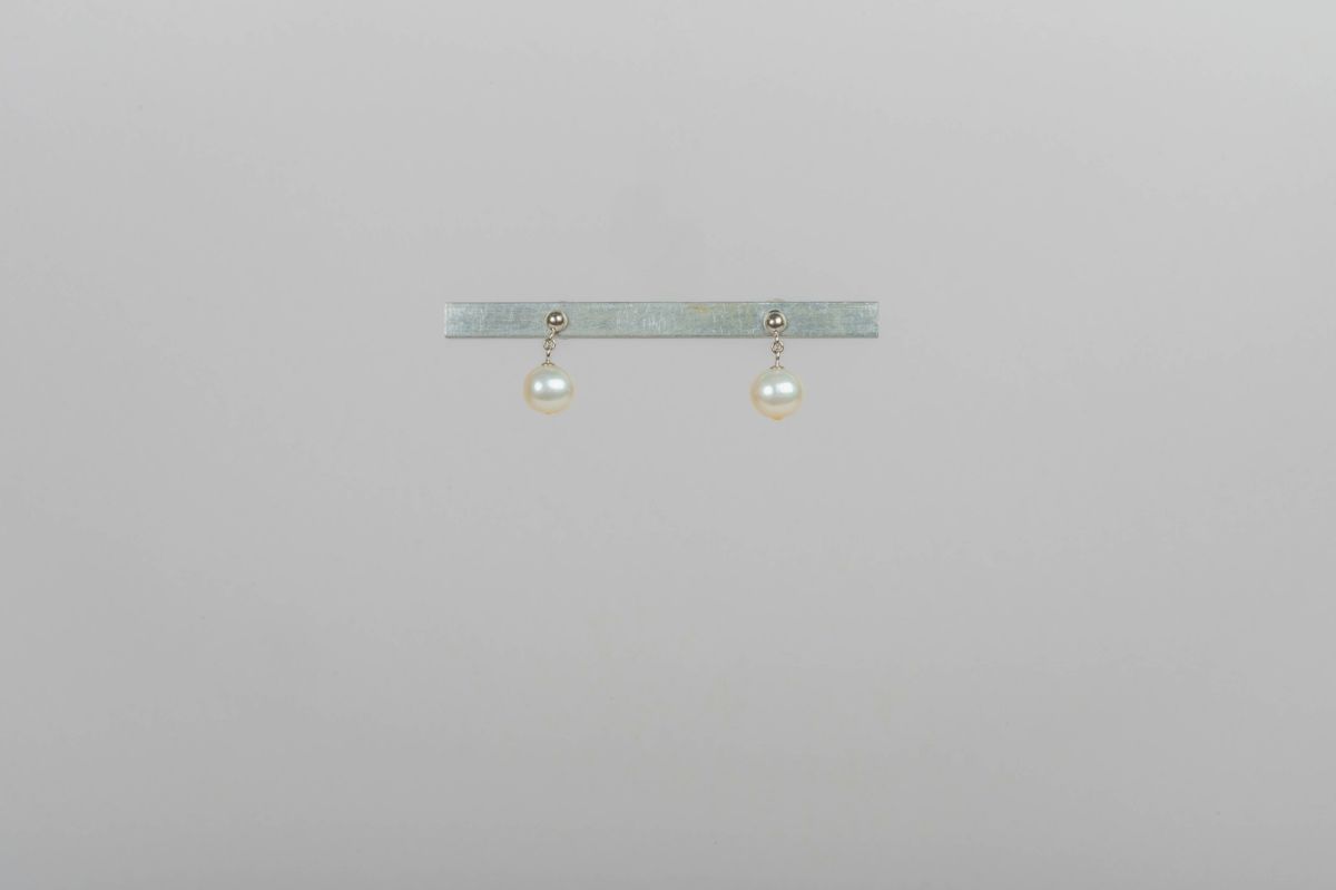 7mmの淡水パールを直付けピアスにぶら下げたデザイン。フックと違い、着けた際の安定感がありながら揺れ感を楽しめるので、引っかけてしまうような心配も和らぎます。7mmのサイズのしっかりとした存在感でK18のホワイトゴールドと真珠の白でワントーンにまとめているので色々シーンでお楽しみいただけます。
