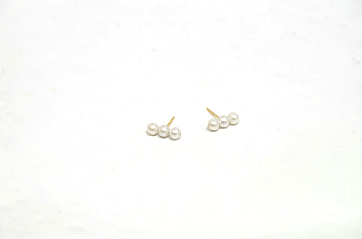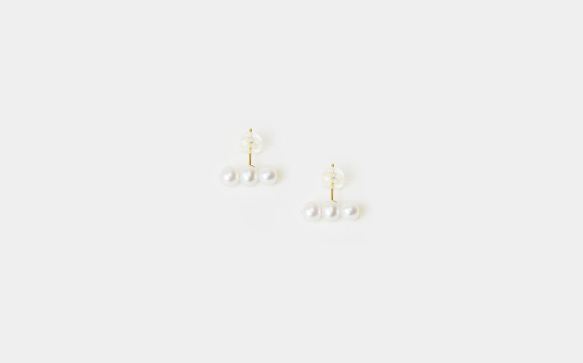 4mmの淡水パールを3珠あしらったバータイプのピアス。さりげないサイズのデザインで着ける角度で印象が変わります。ペアではもちろん、片耳だけやアシンメトリーに合わせても素敵です。