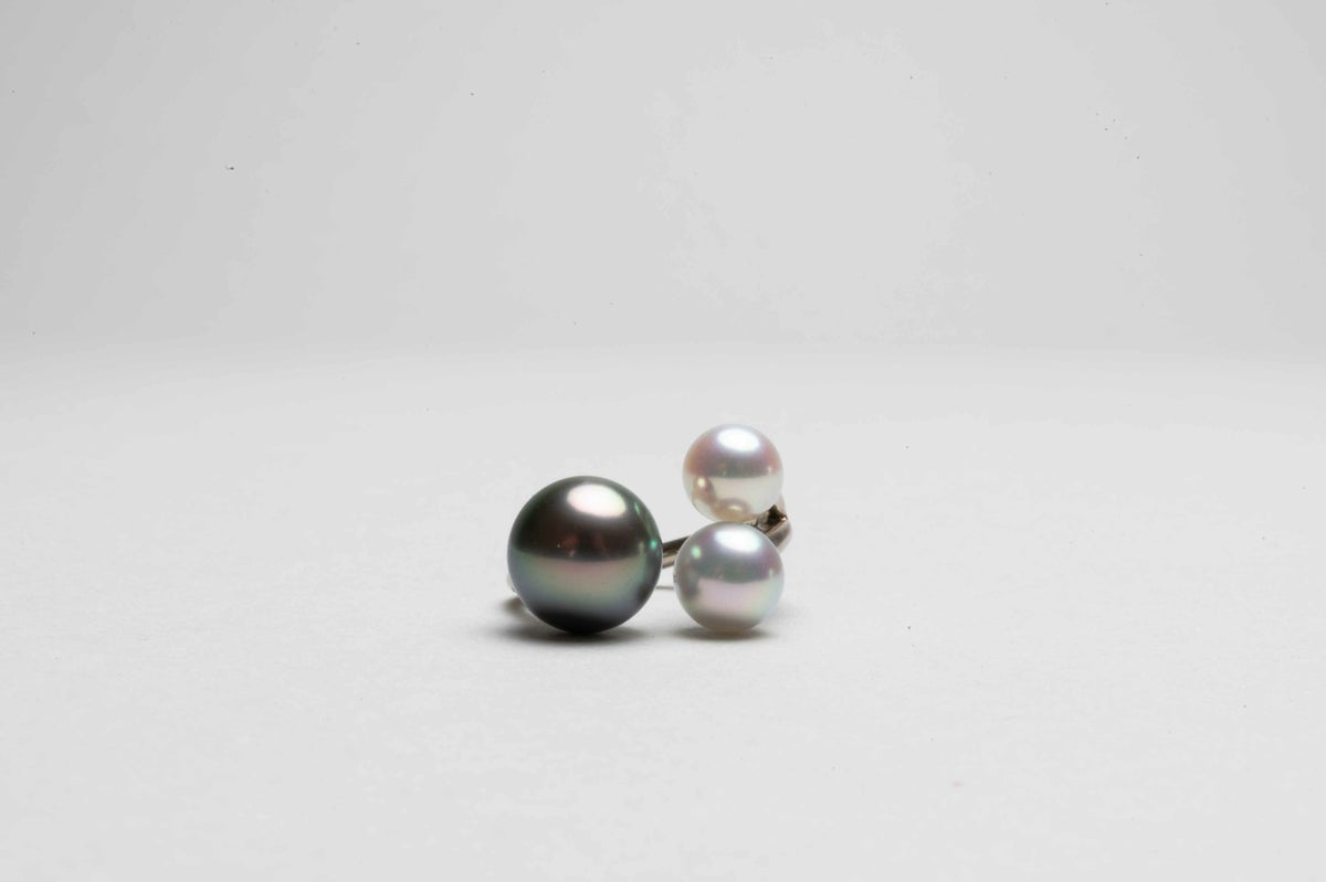 黒蝶×アコヤパール3珠リングK18WG