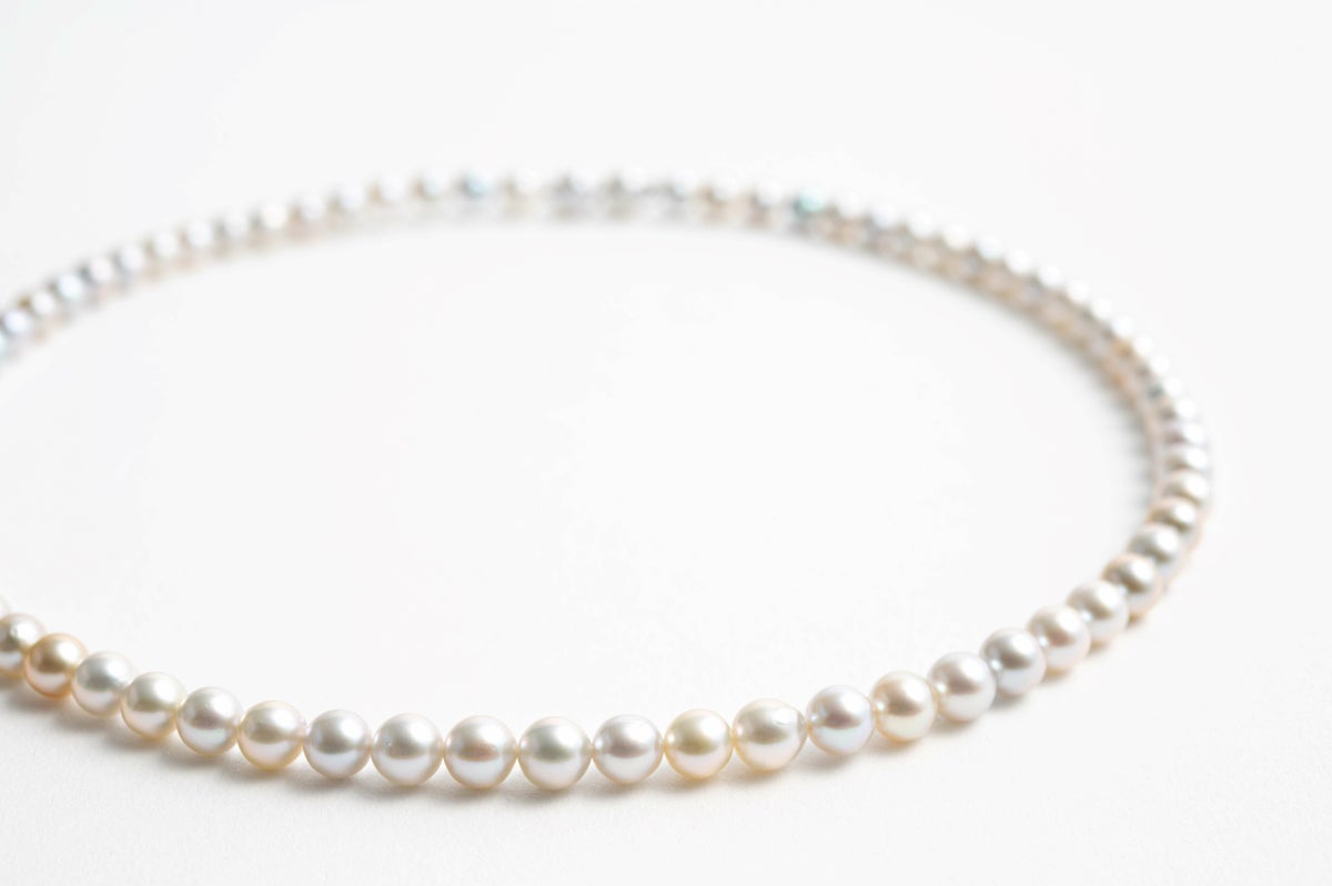 無調色真珠ならではの自然が育んだ美しいホワイト、クリーム、ナチュラルグレーカラーのパールの色味を堪能できるアコヤのマルチカラー。
