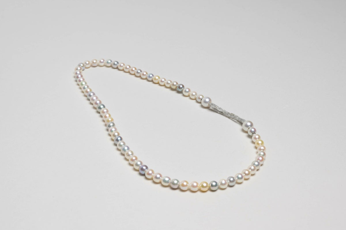 無調色真珠ならではの自然が育んだ美しいホワイト、クリーム、ナチュラルグレーカラーのパールの色味を堪能できるアコヤのマルチカラー6mmのパールネックレス。ネックレスは色のバランスを考えたソーティングにより他にはない存在感の希少なアイテム。そこにアクセントでキューブ状のダイヤモンドを贅沢に3連にしたショートモジュールを加えたデザインの提案です。ダイヤモンドモジュールの位置によっても印象が変わります。パールの中に埋め込まれた<MADAMA>オリジナルのクラスプは、回しながら差し込みねじると留められ、互いを押し合いねじると外れます。つなぎ目が見えず、どの角度からでもきれいにお着けいただけます。他のモジュールと合わせればロングネックレスとしてもお使いいただけて、自分だけのデザインネックレスをお楽しみいただけます。優しい色味たちは肌馴染みもとても綺麗です。白でラウンドのイメージが強い真珠とは全く異なる新しい楽しみ方をご堪能ください。