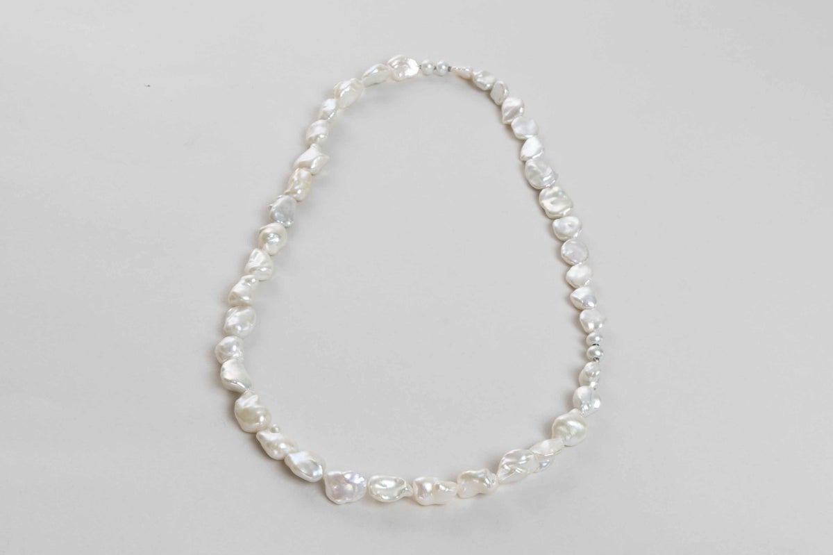 淡水板ケシバロックパールミディアムネックレス約10-13.5mm