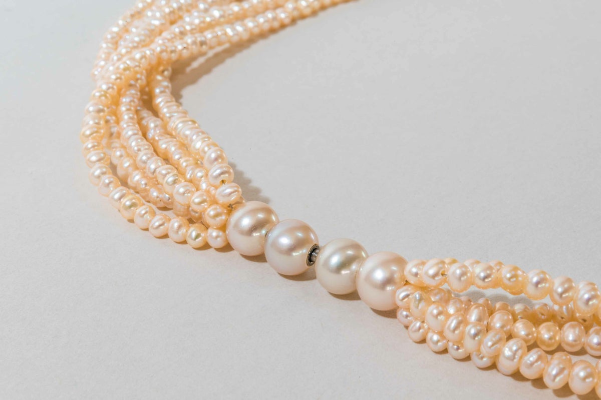 淡水ケシパールオレンジピンク6連ネックレス
