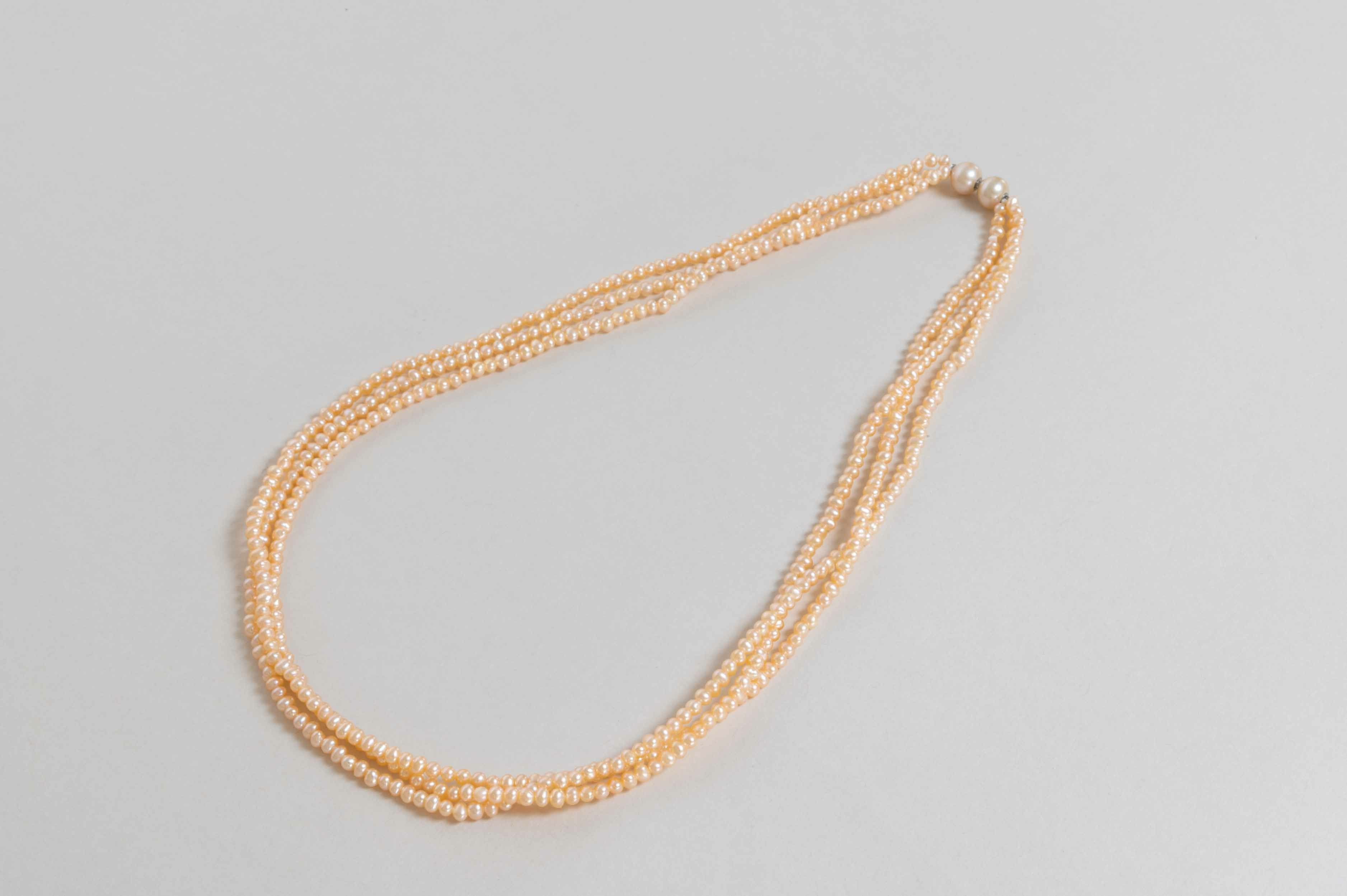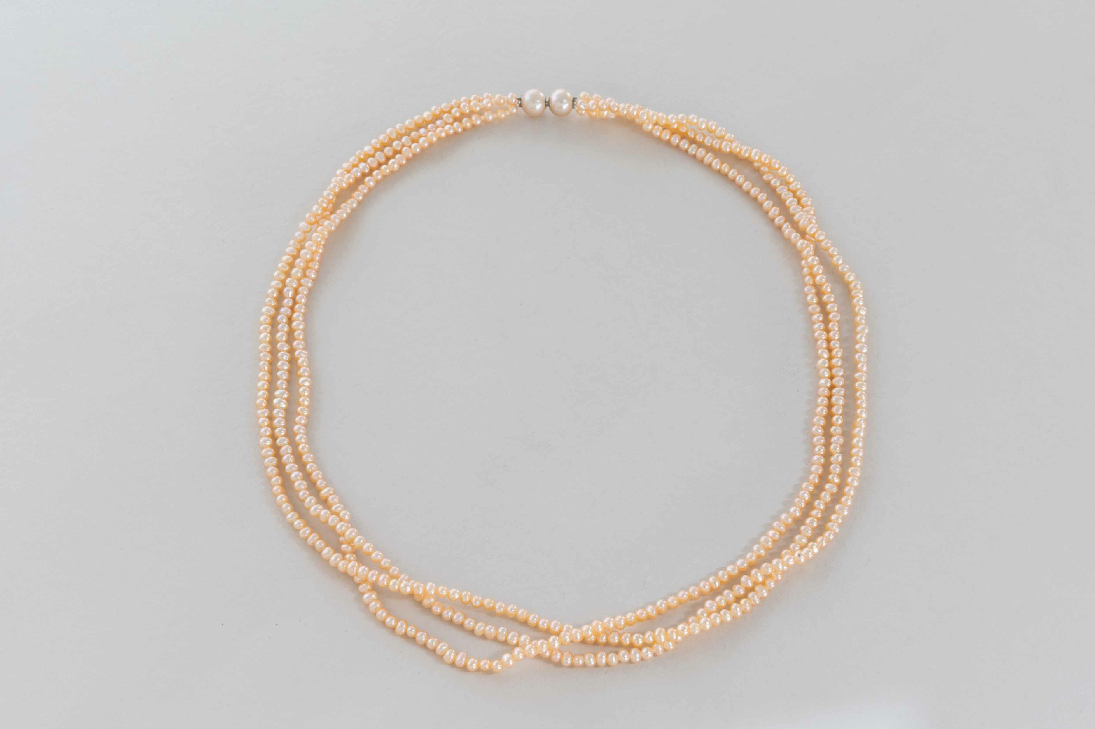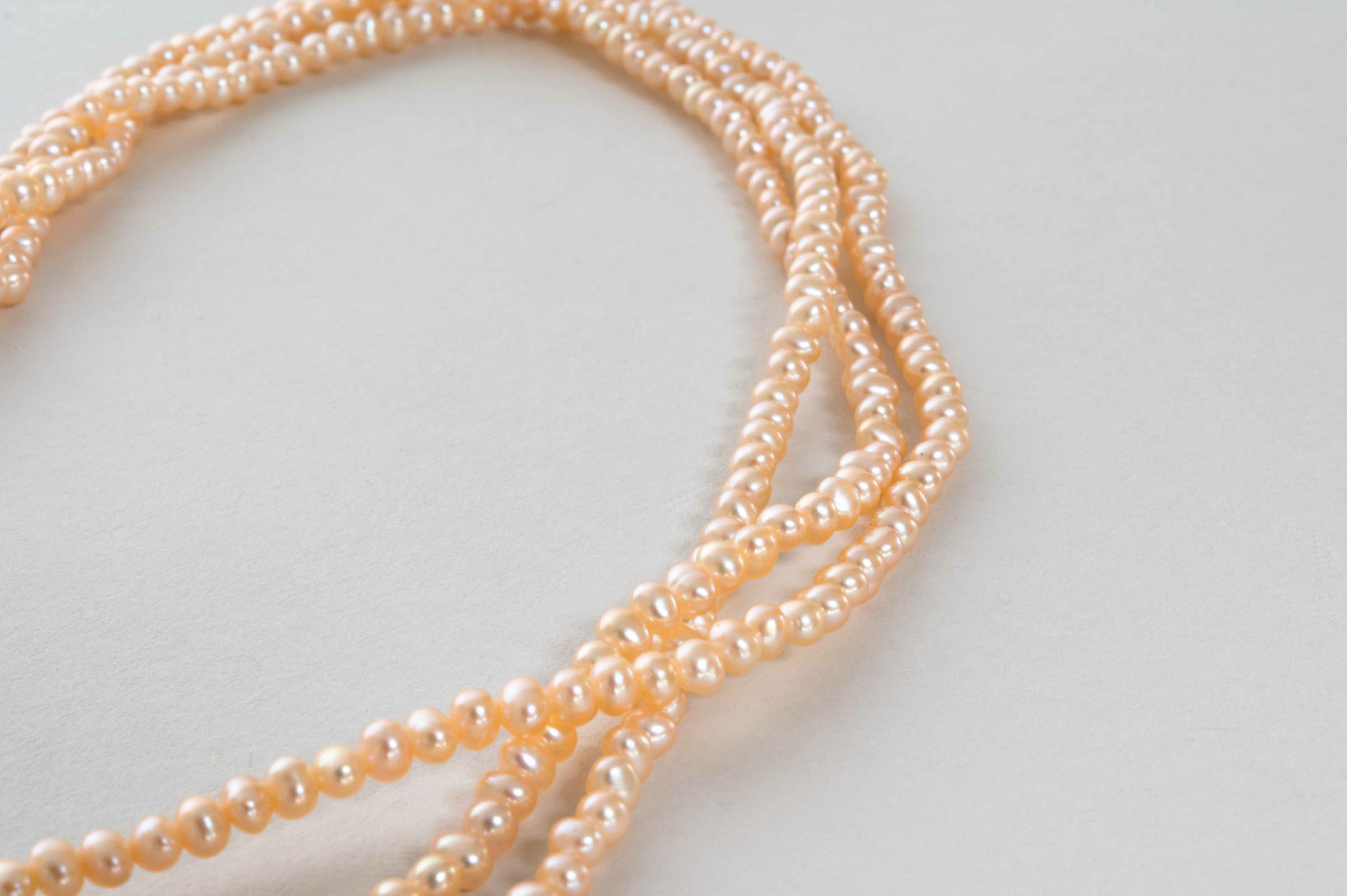 淡水ケシパールオレンジピンク3連ネックレス
