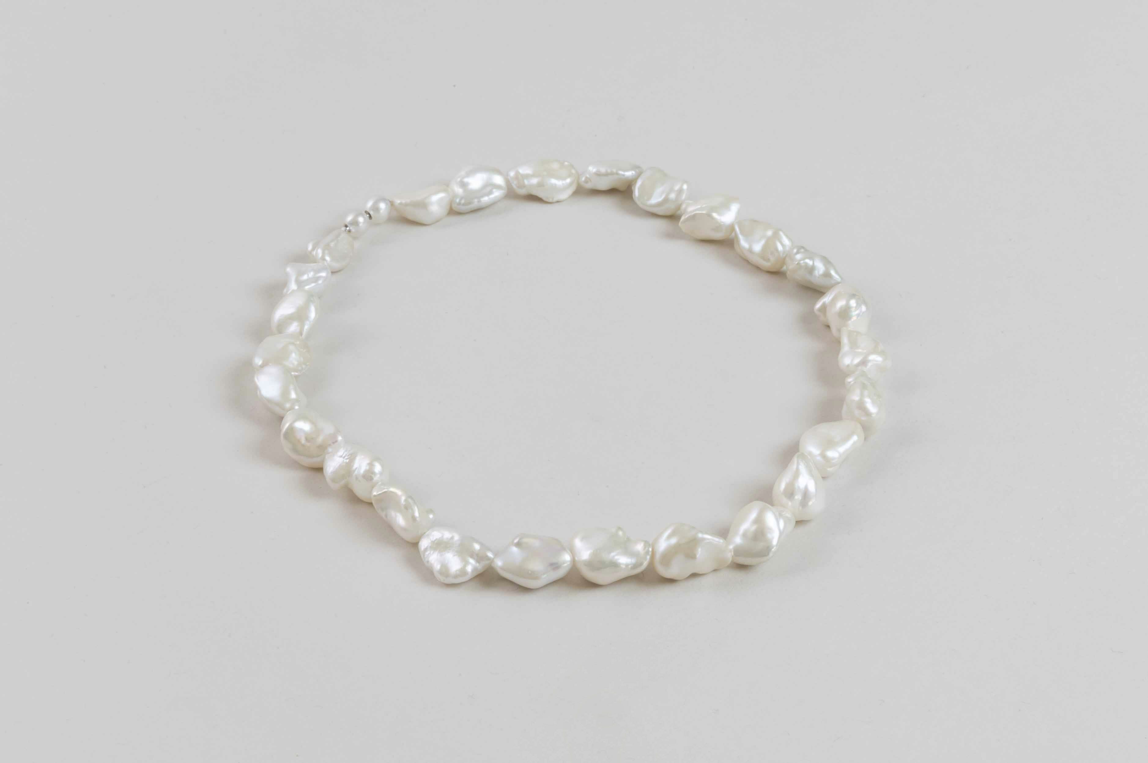 淡水板ケシバロックパールミディアムネックレス約10-13.5mm