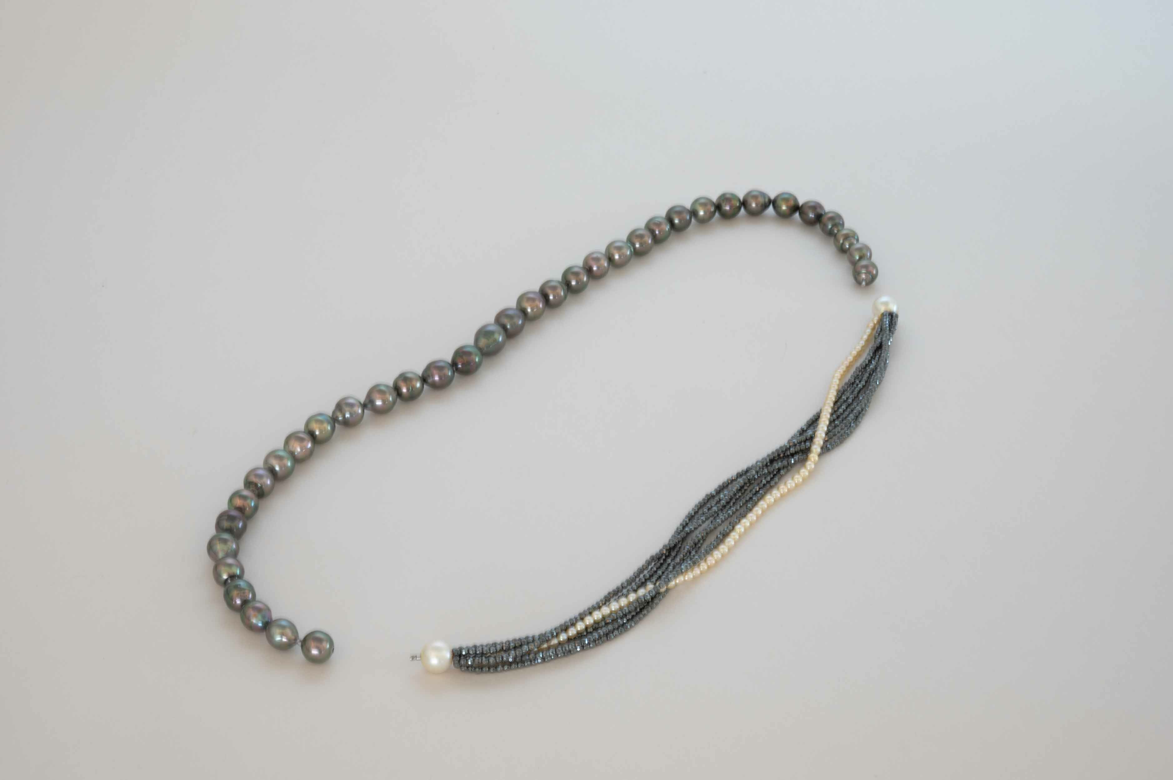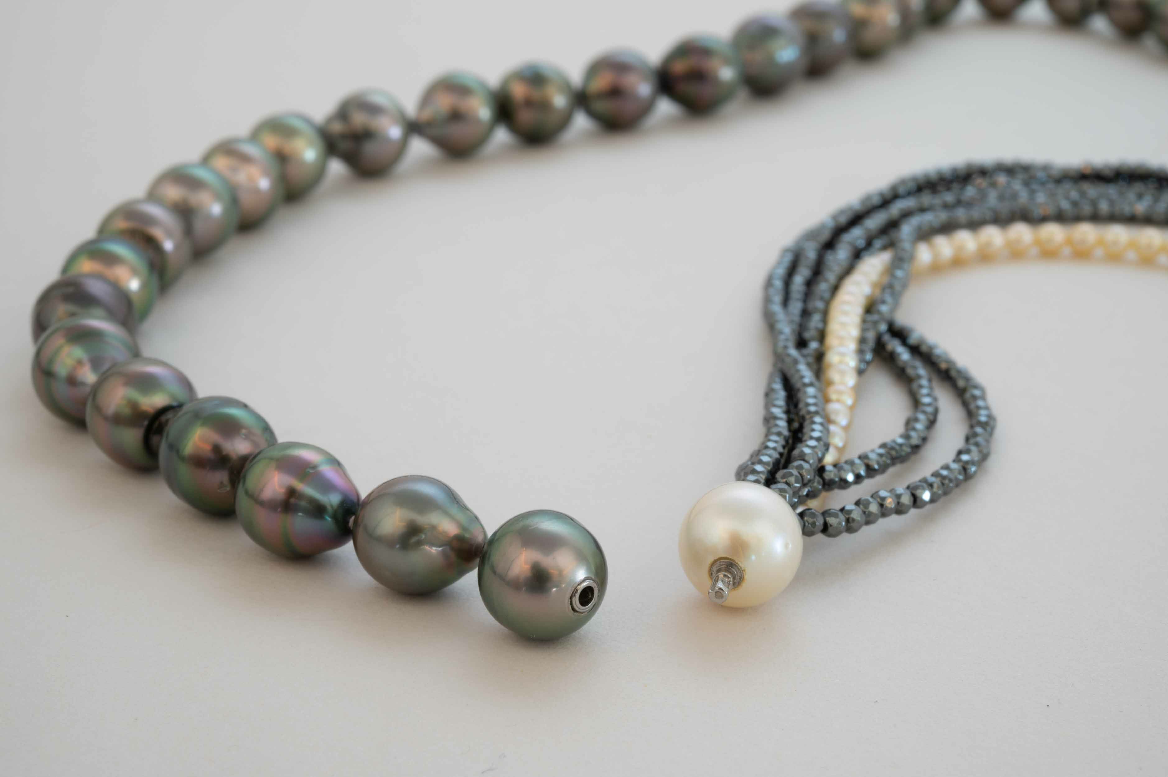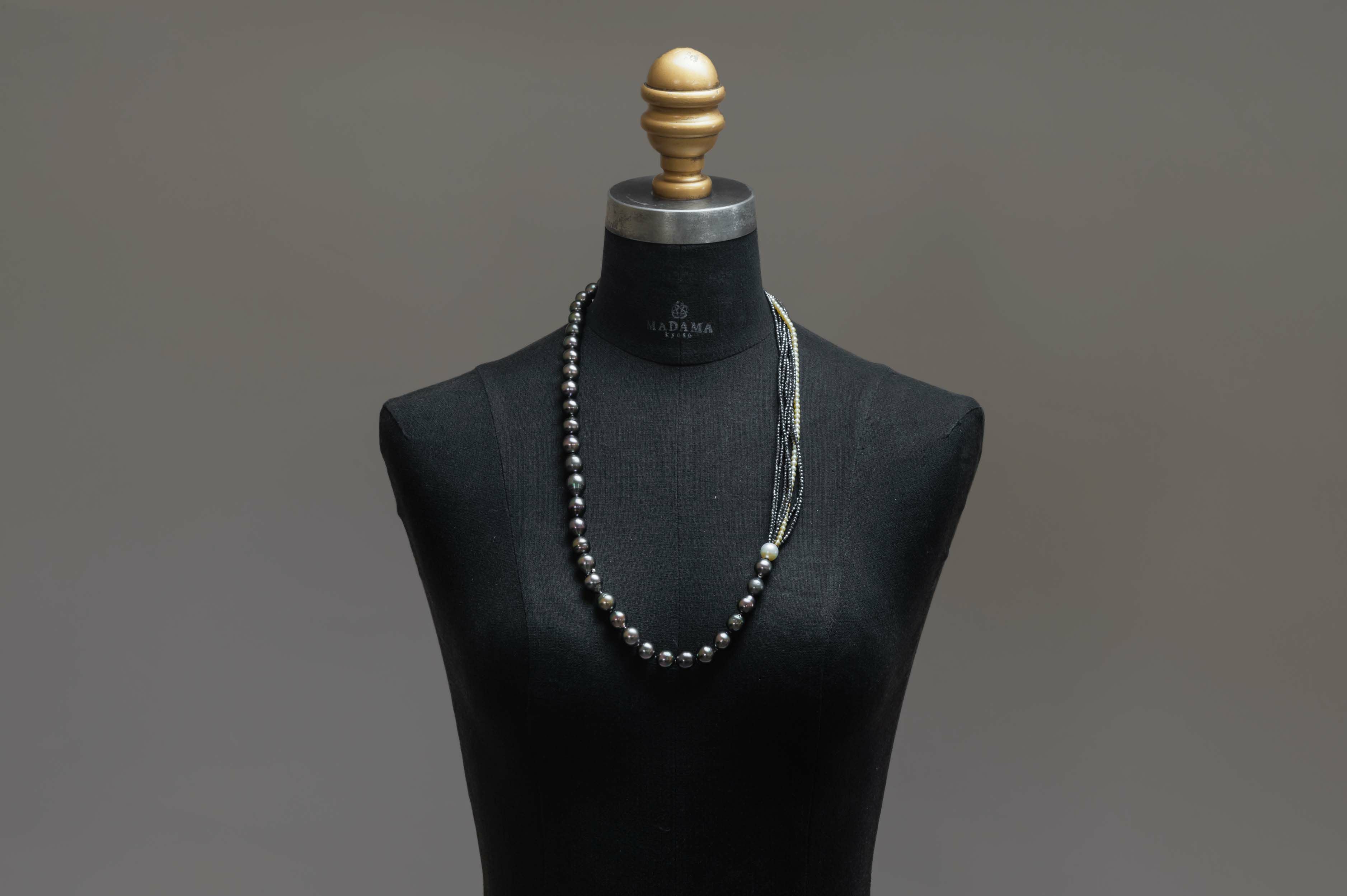 黒蝶バロックパール×ヘマタイトロングネックレス