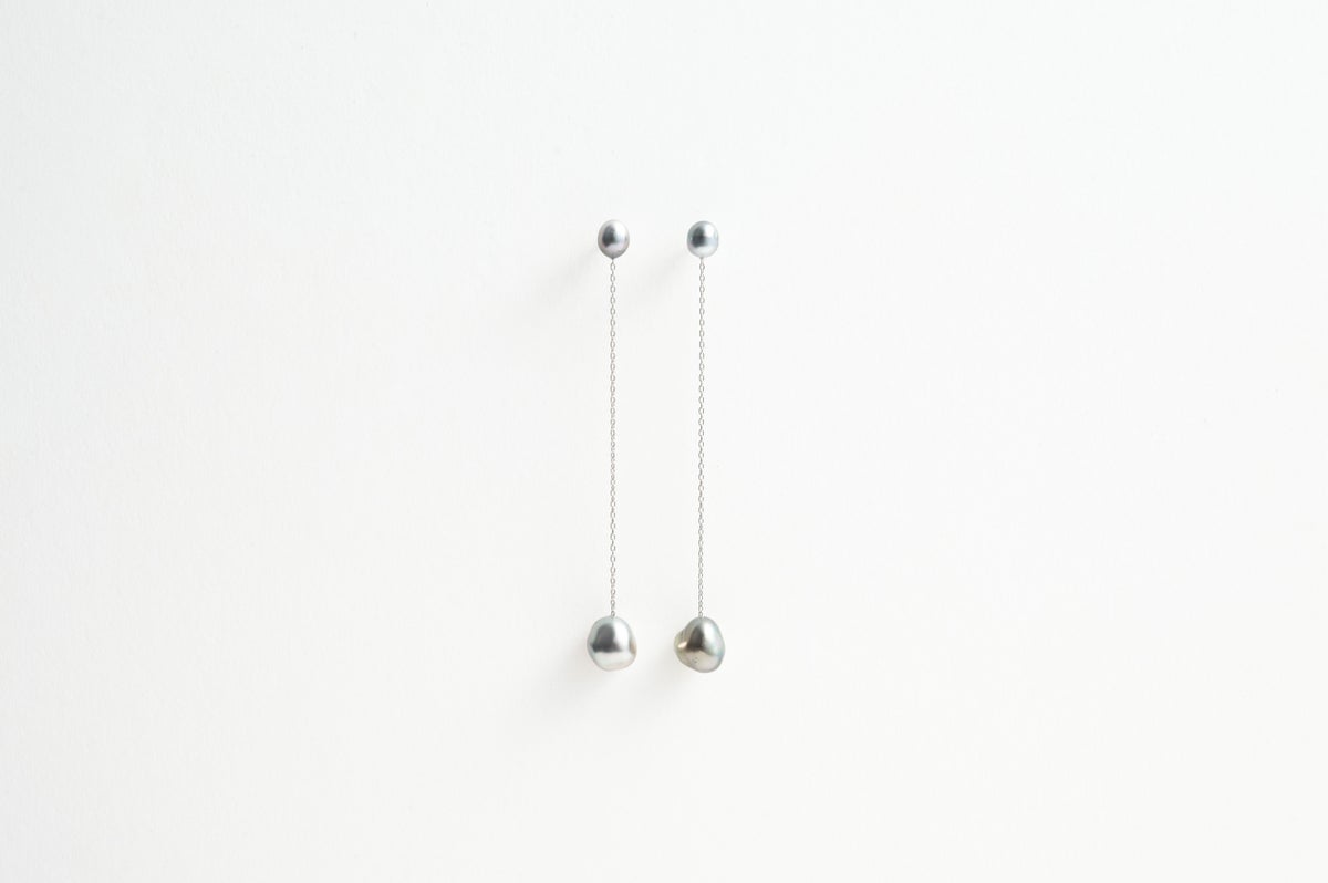 希少な黒蝶ケシパールを使ったデザインピアス。