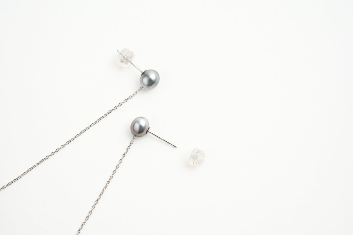 黒蝶ケシパールチェーンピアスPT