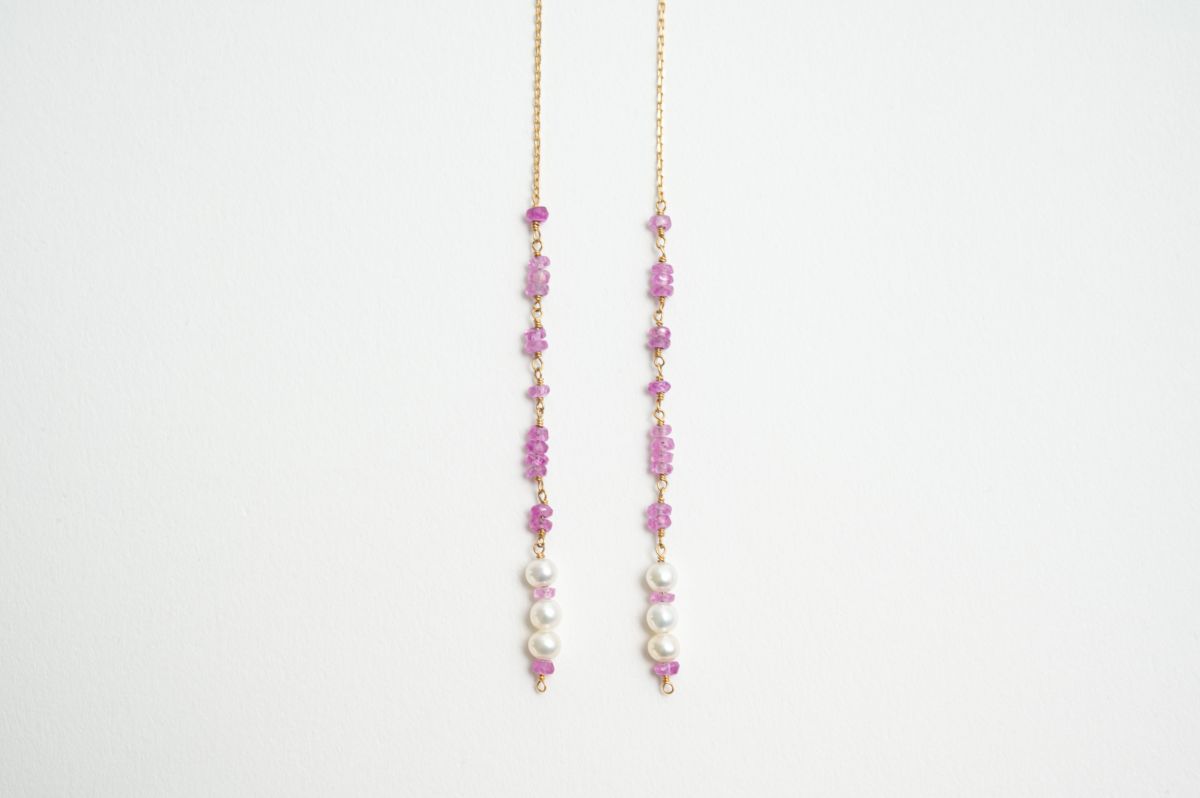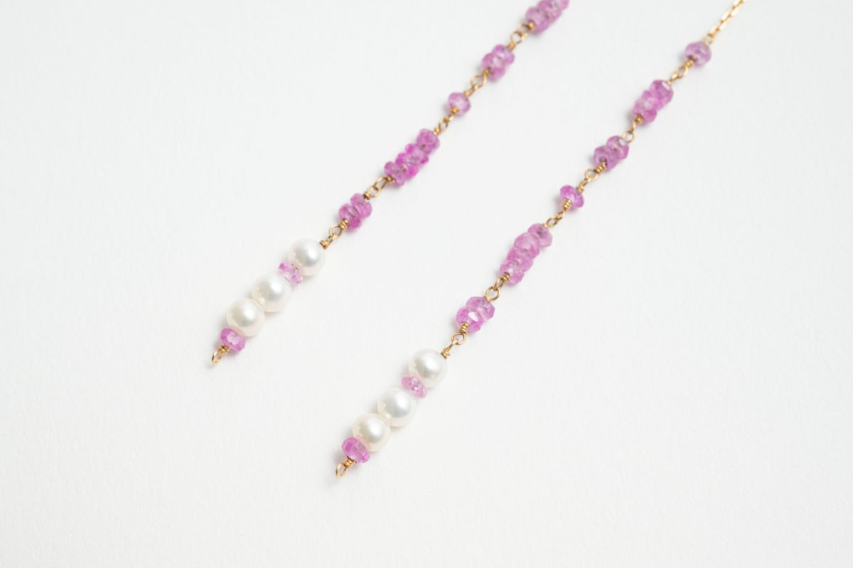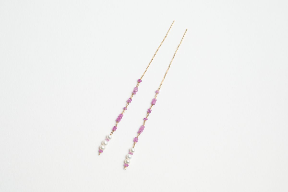 ピンクの色味が可愛らしいルビー散りばめたアメリカンピアス。