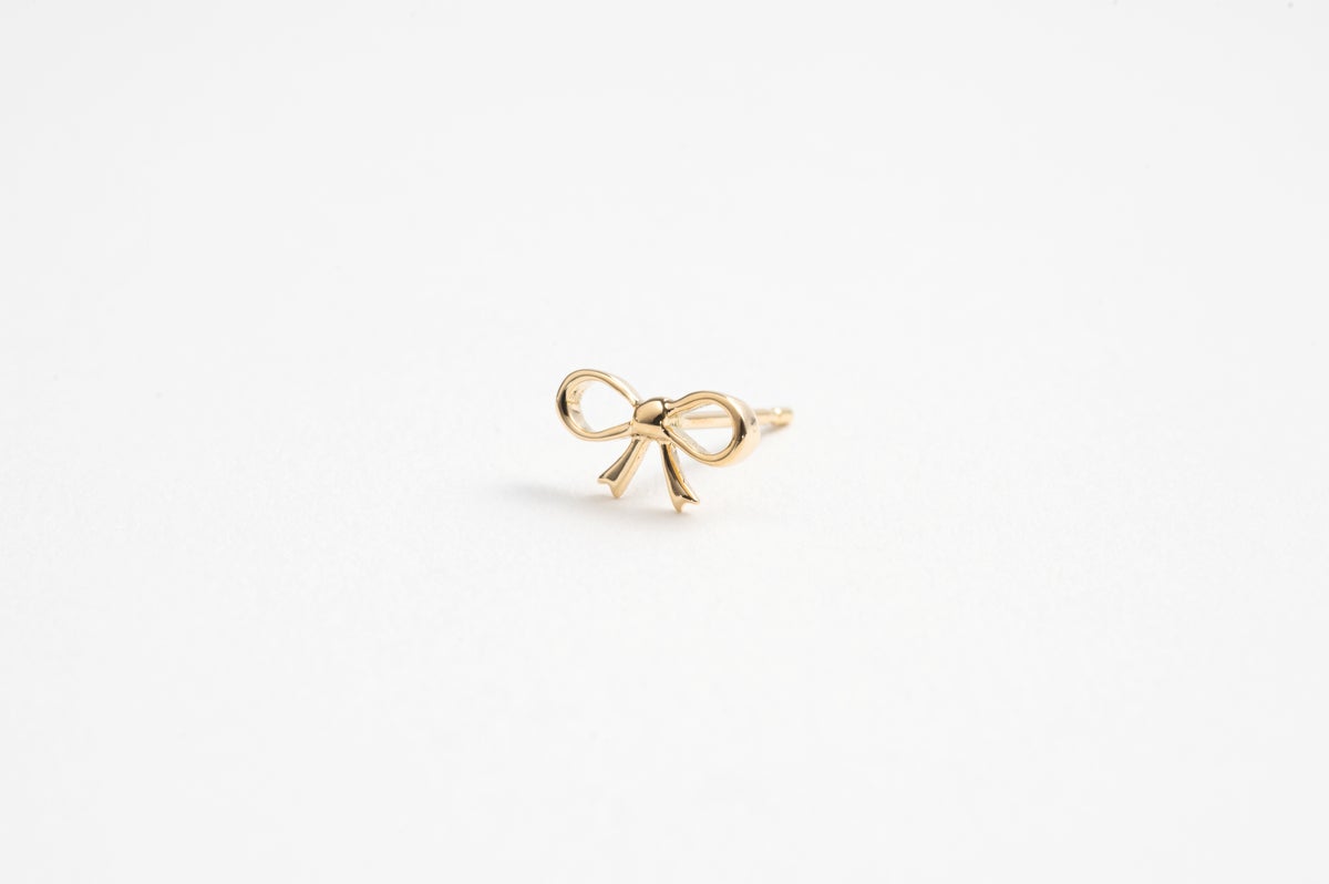 K18のイエローゴールドで施した小さなリボンの片耳ピアス。