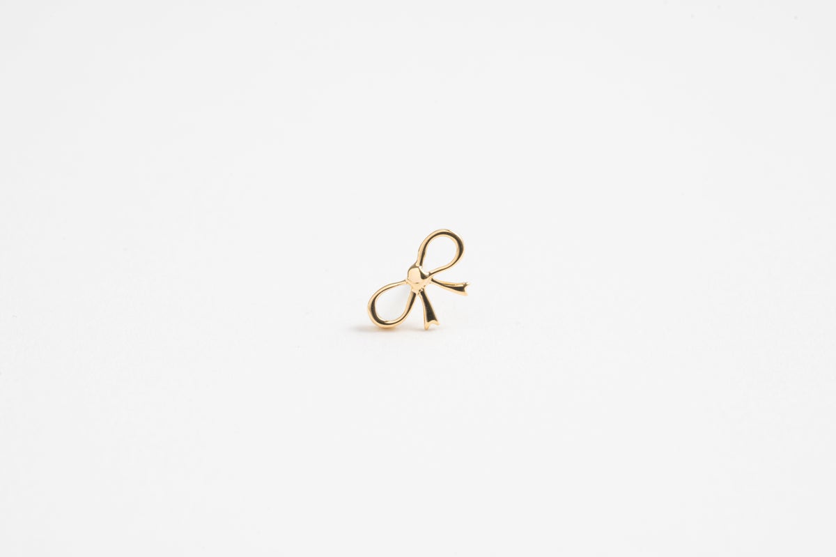 控えめでありながらキラリと輝くゴールドのリボンは大人の可愛らしさを演出し、単品ではもちろん、お手持ちのチャームを通してデザイン豊かなピアスとしてもお使いいただけます。