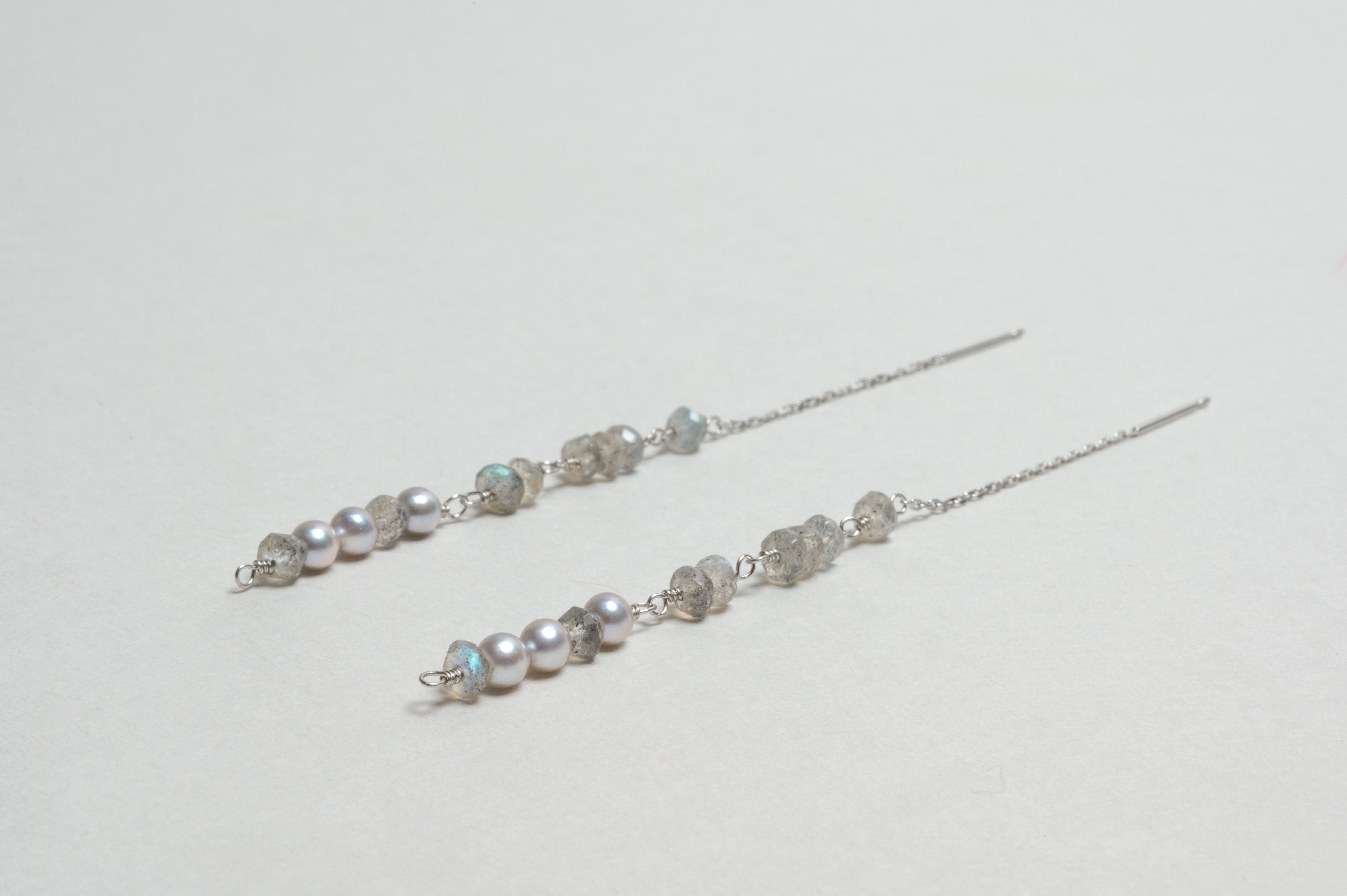 アコヤバロックパールナチュラルグレー×ラブラドライトアメリカンピアス
