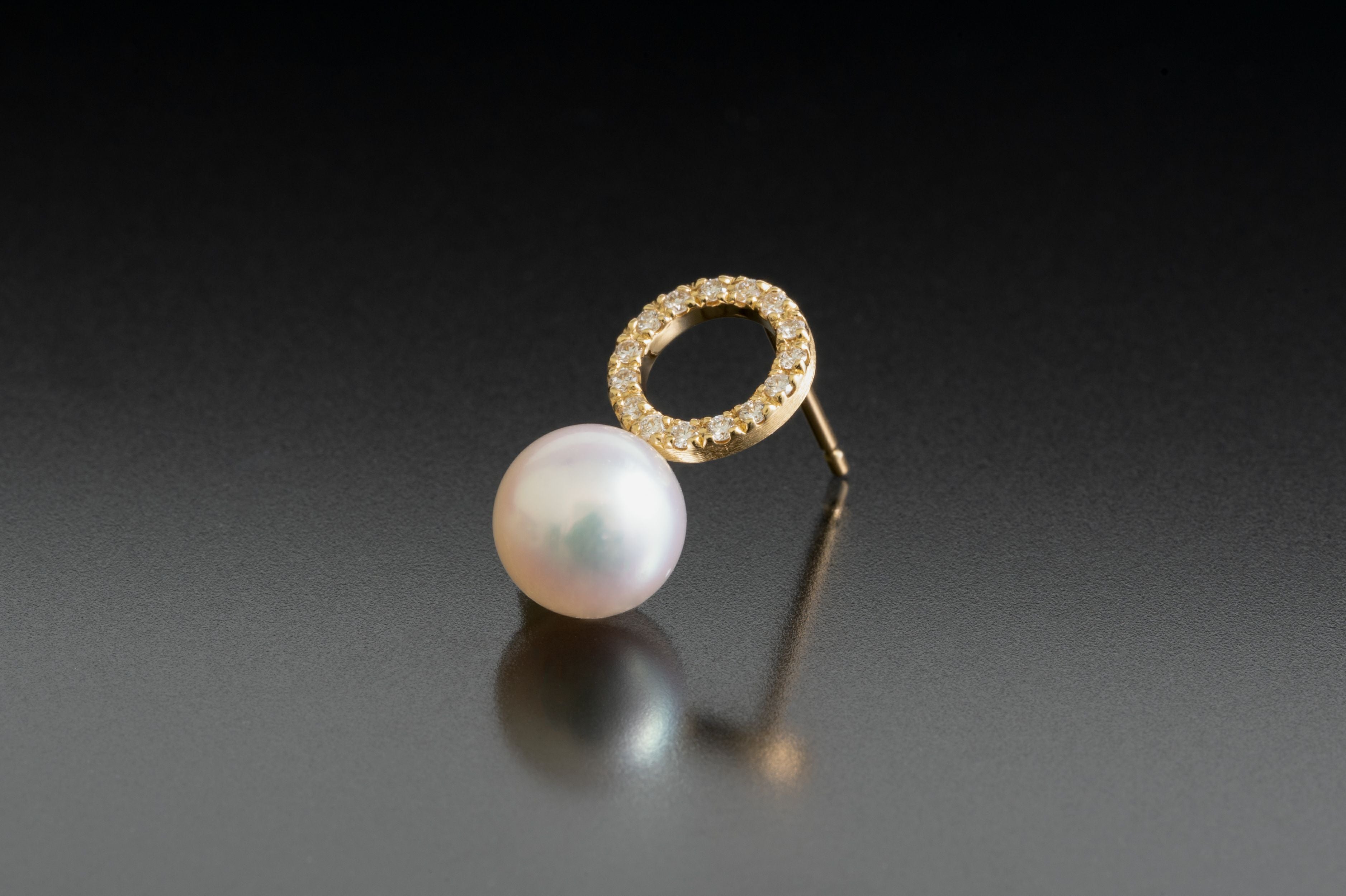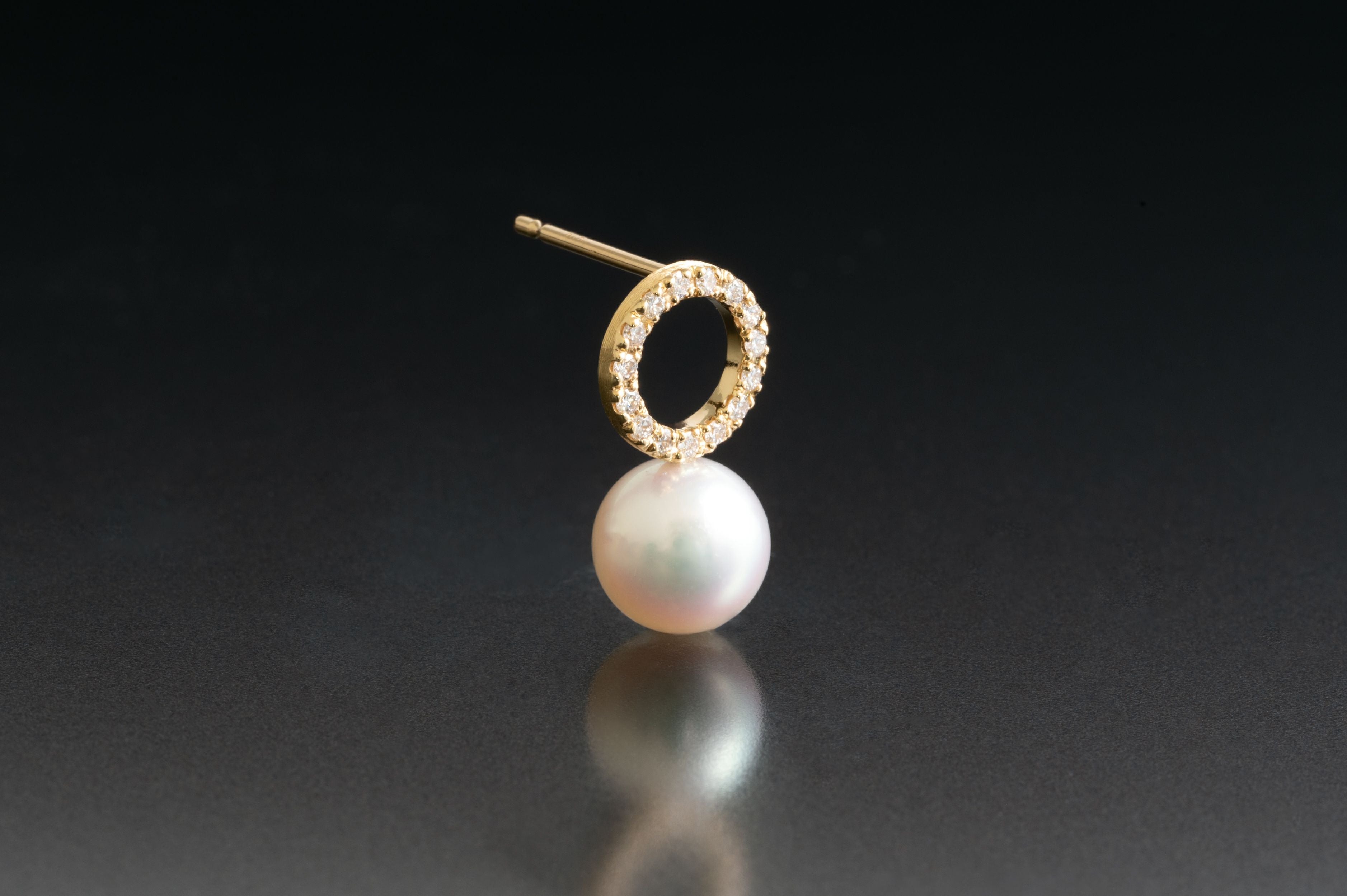 ダイヤモンドフープ×アコヤパールシングルピアスK18YG