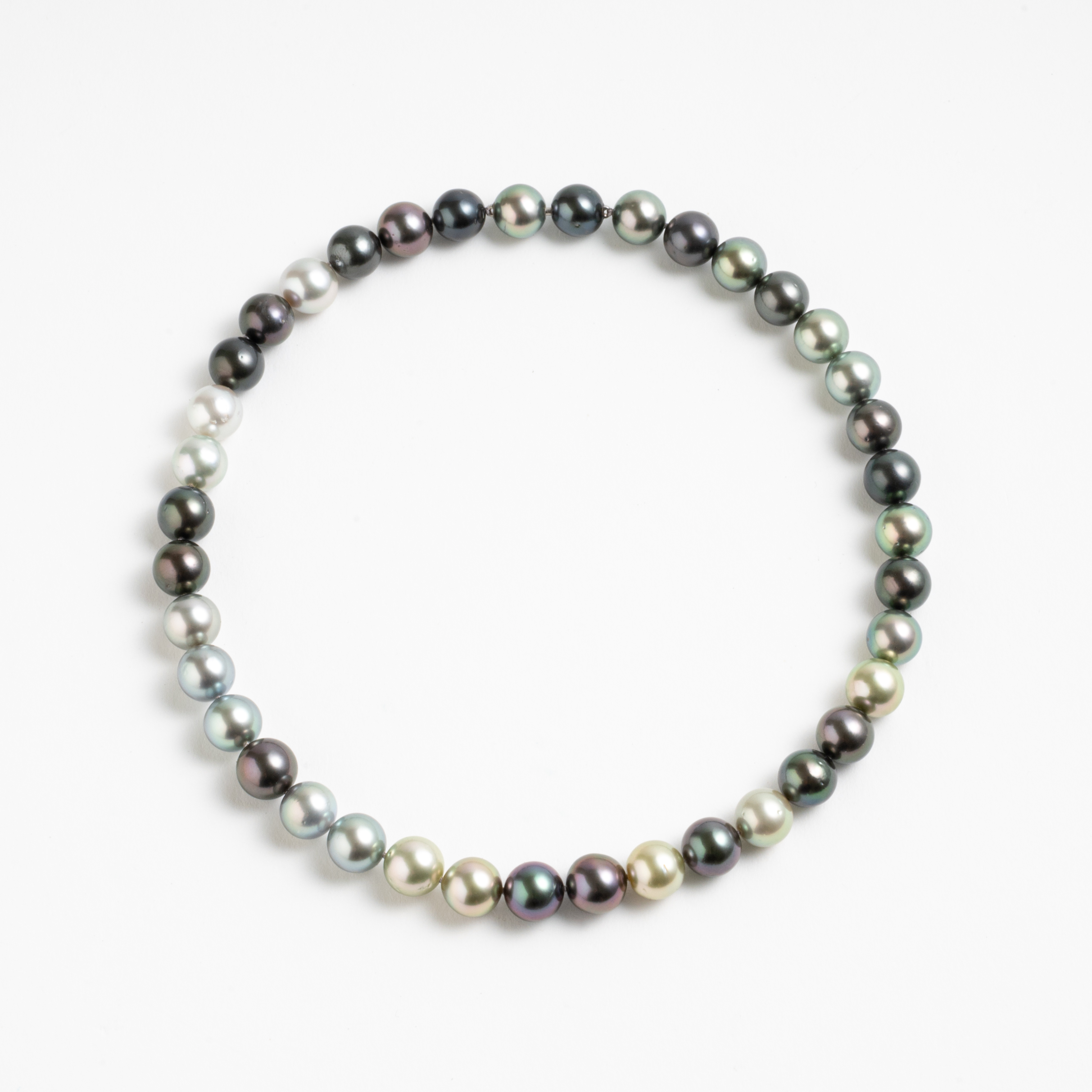 MADAMAの黒蝶真珠はタヒチの中でもガンビエ諸島のリキテア産の自然が育んだ色彩豊かな、彩りある真珠になります。その特徴を最大限にいかして黒蝶真珠の黒くて重厚感あるイメージとはまた違った、華やかな彩りを堪能できるカラフルなコレクションを作りました。1つ1つ色味が変わるからこそそれぞれが1点ものになる希少なアイテムたち。ぜひ自分だけのお好みのカラーリングを見つけ出してください。